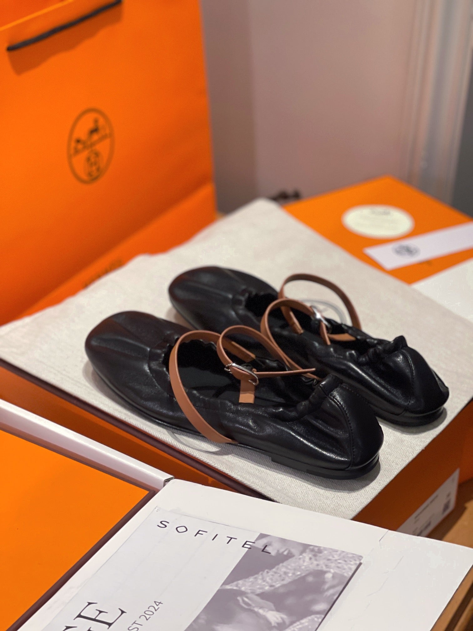 HM Jolly Ballet Flat In Black Lambskin 100081
