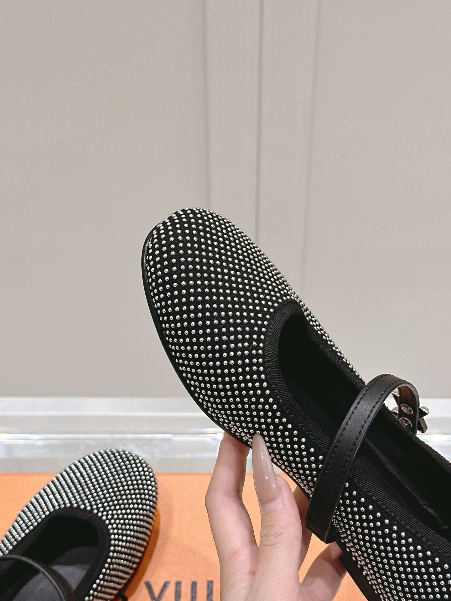 LV SS25 Romy Flat Ballerina Rivets Black Sheepskin