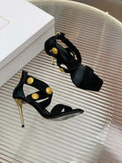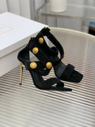 BALMAIN 25S CROSSOVER STRAP HIGH HEELS 95MM IN BLACK SUEDE
