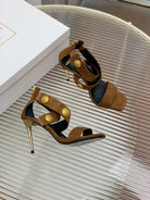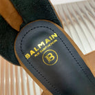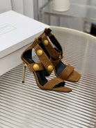 BALMAIN 25S CROSSOVER STRAP HIGH HEELS 95MM IN BROWN SUEDE