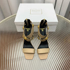 BALMAIN 25S CROSSOVER STRAP HIGH HEELS 95MM IN LIGHT BROWN CALFSKIN