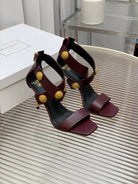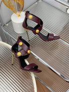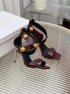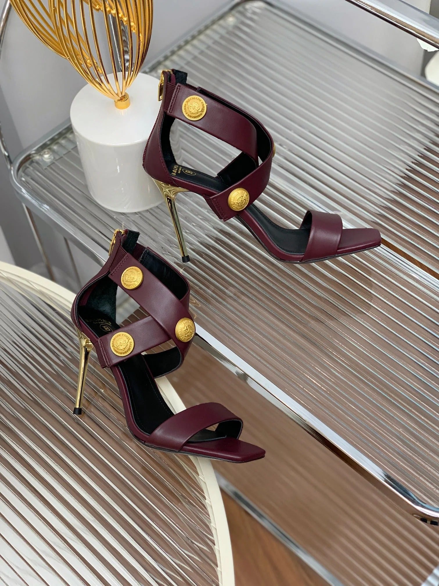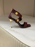 BALMAIN 25S CROSSOVER STRAP HIGH HEELS 95MM IN ROSEWOOD CALFSKIN