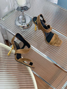 BALMAIN 25S HIGH HEEL SANDALS 95MM IN BROWN SUEDE