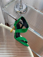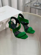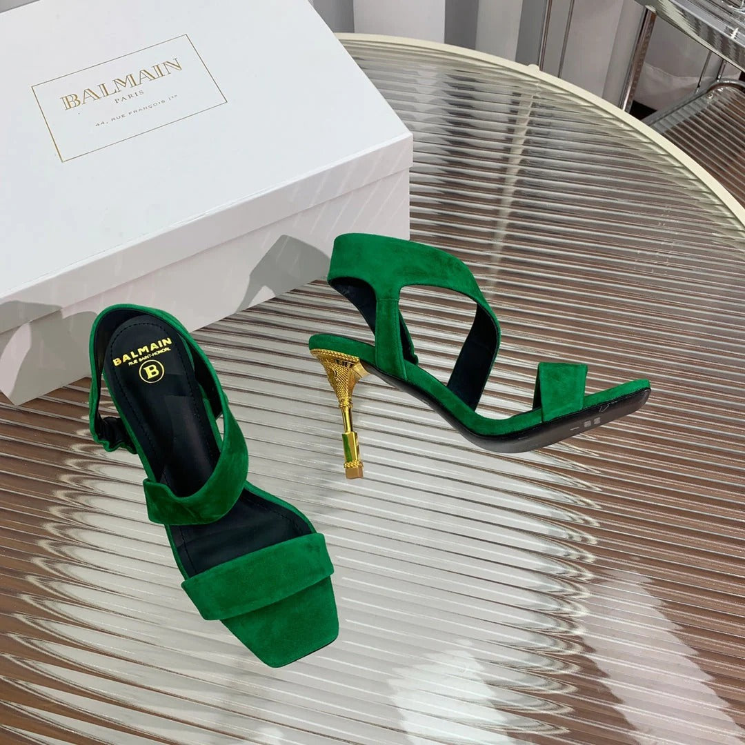 BALMAIN 25S HIGH HEEL SANDALS 95MM IN DARK GREEN SUEDE