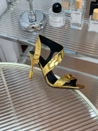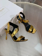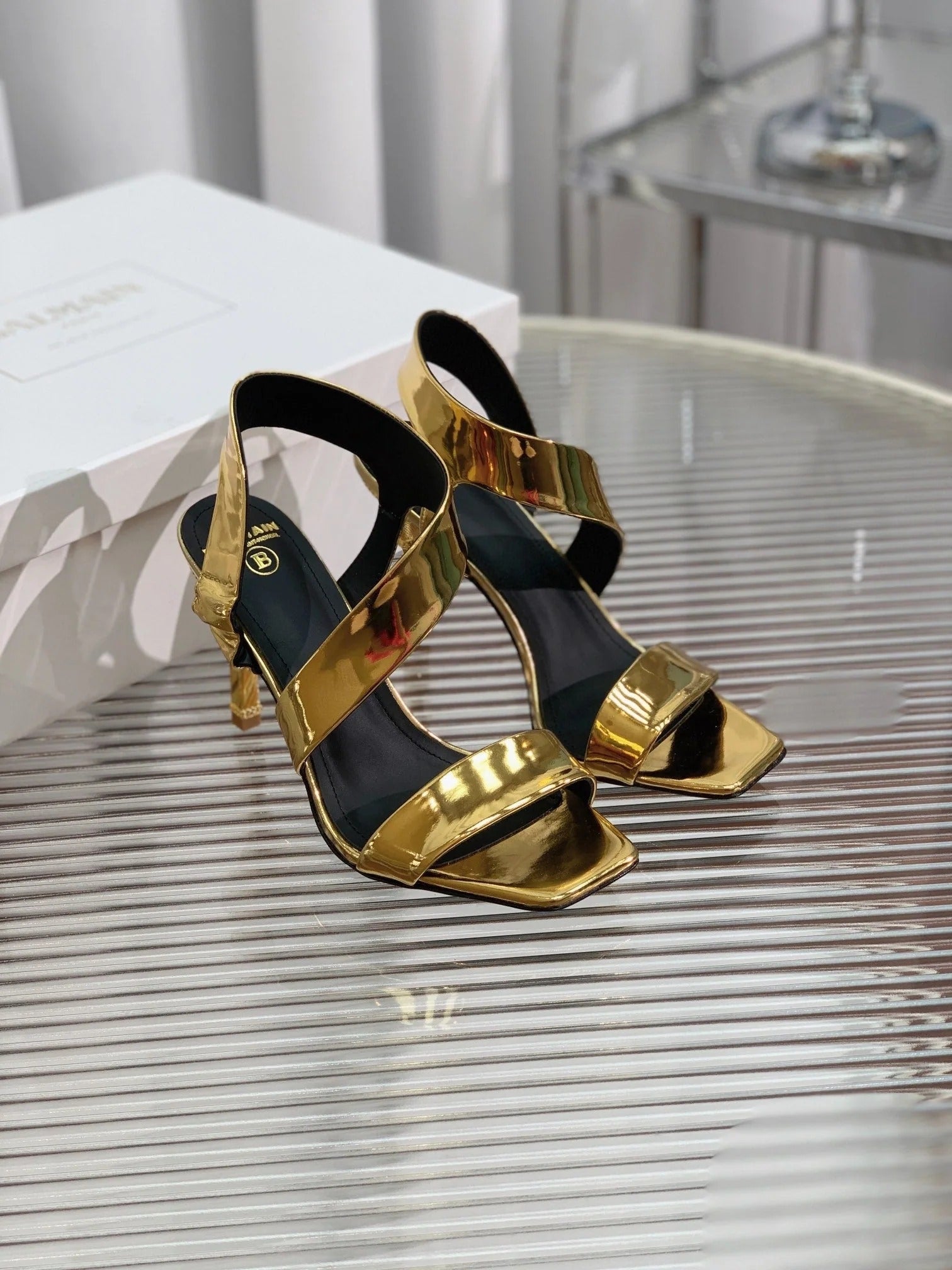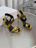BALMAIN 25S HIGH HEEL SANDALS 95MM IN GOLD GLOSSY CALFSKIN
