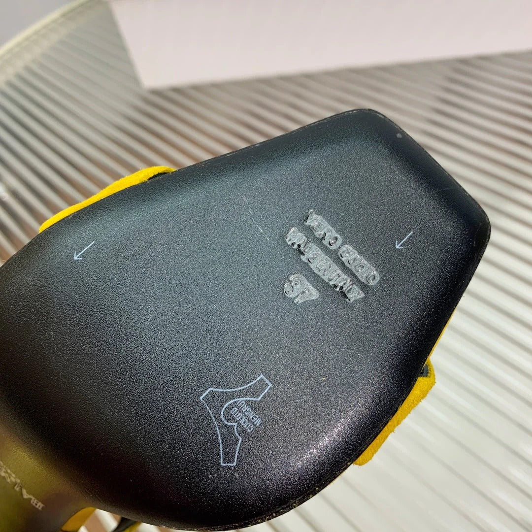 BALMAIN 25S HIGH HEEL SANDALS 95MM IN GOLDEN YELLOW SUEDE