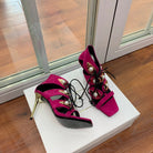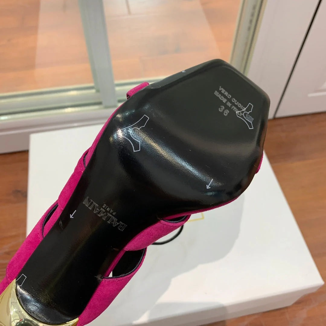 BALMAIN 25S HIGH HEELS 95MM IN FUCHSIA SUEDE WITH PEARL