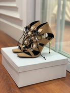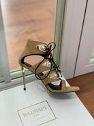 BALMAIN 25S HIGH HEELS 95MM IN LIGHT BROWN SUEDE WITH PEARL