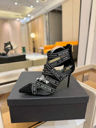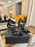 BALMAIN 25S HIGH HEELS LOGO RIBBON 95MM IN BLACK FULL SUEDE