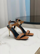 BALMAIN 25S HIGH HEELS WITH B METAL DETAIL 95MM IN CARAMEL CALFSKIN