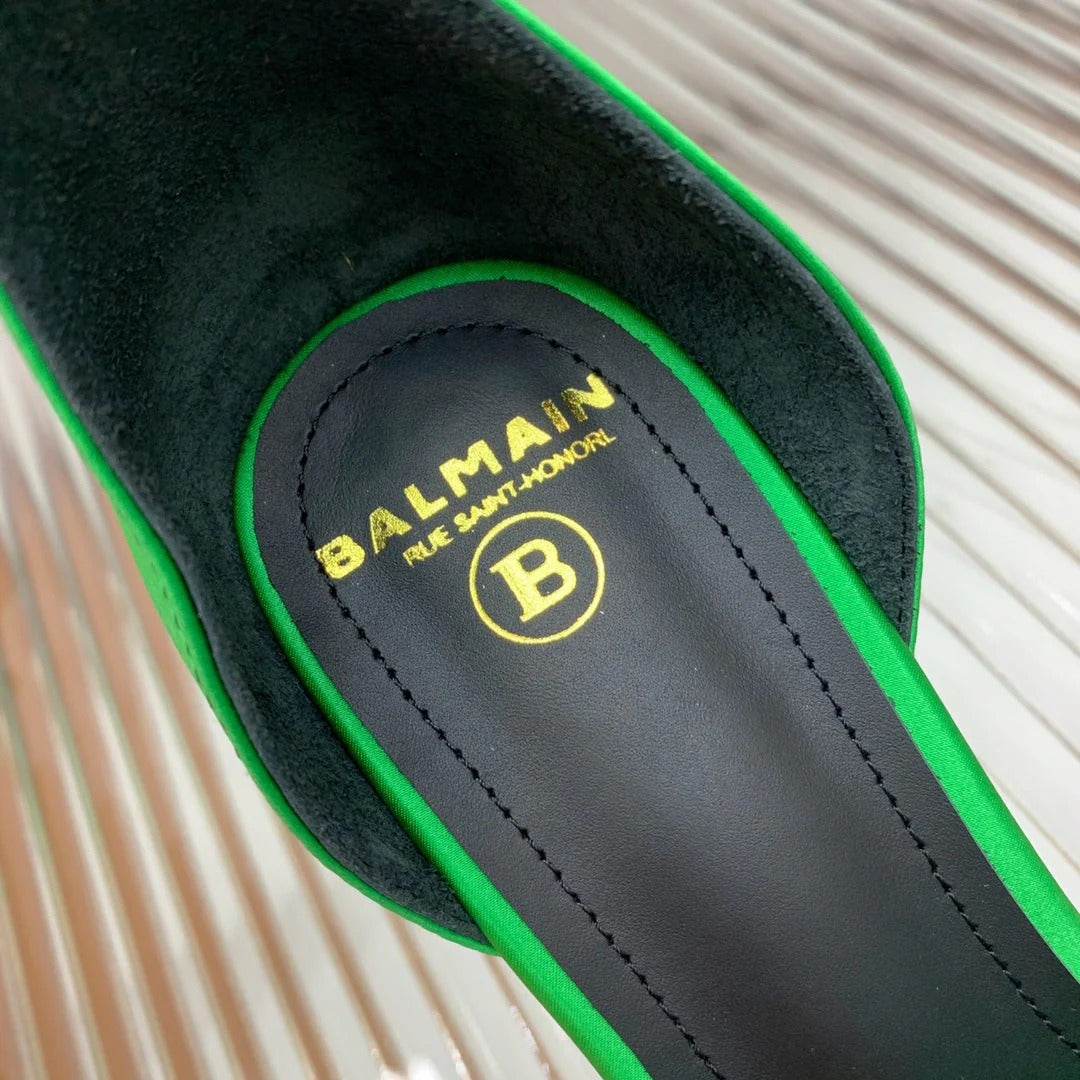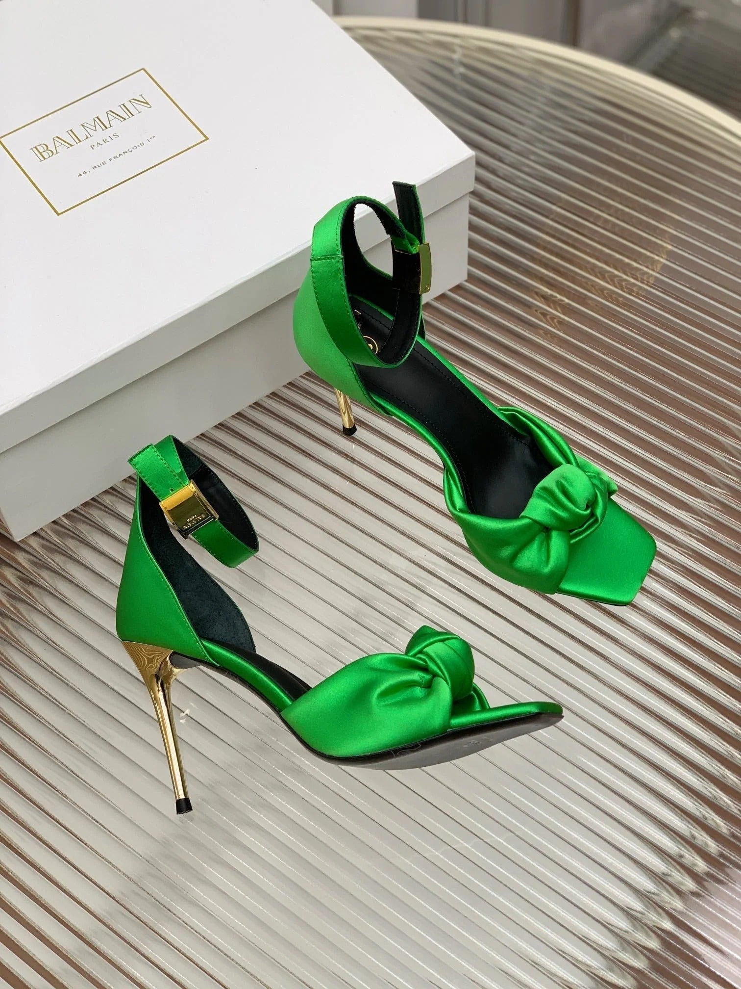 BALMAIN 25S KNOTTED HIGH HEELS 95MM IN KELLY GREEN SATIN
