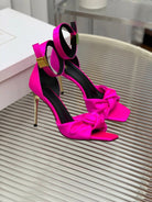 BALMAIN 25S KNOTTED HIGH HEELS 95MM IN NEON PINK SATIN