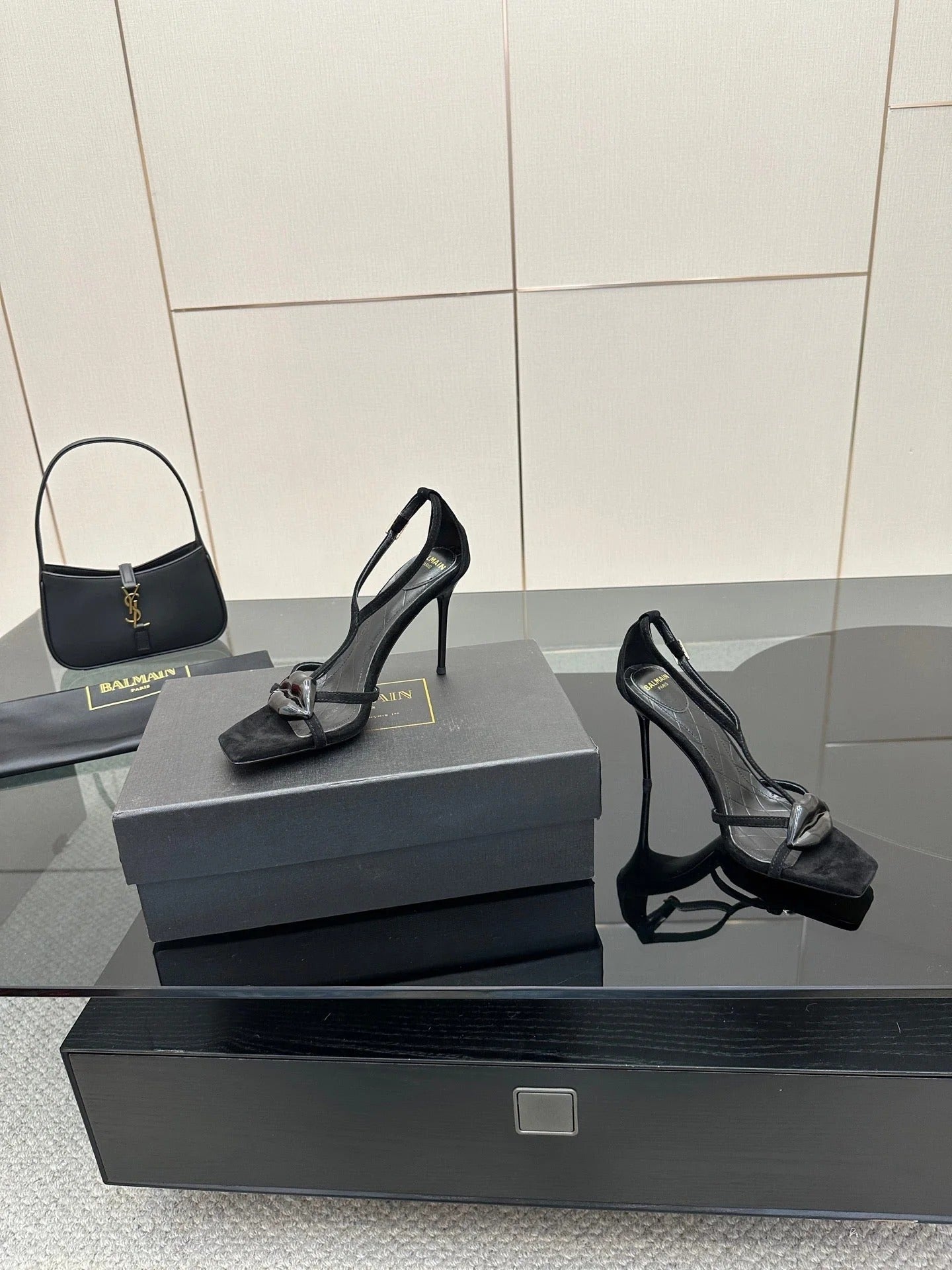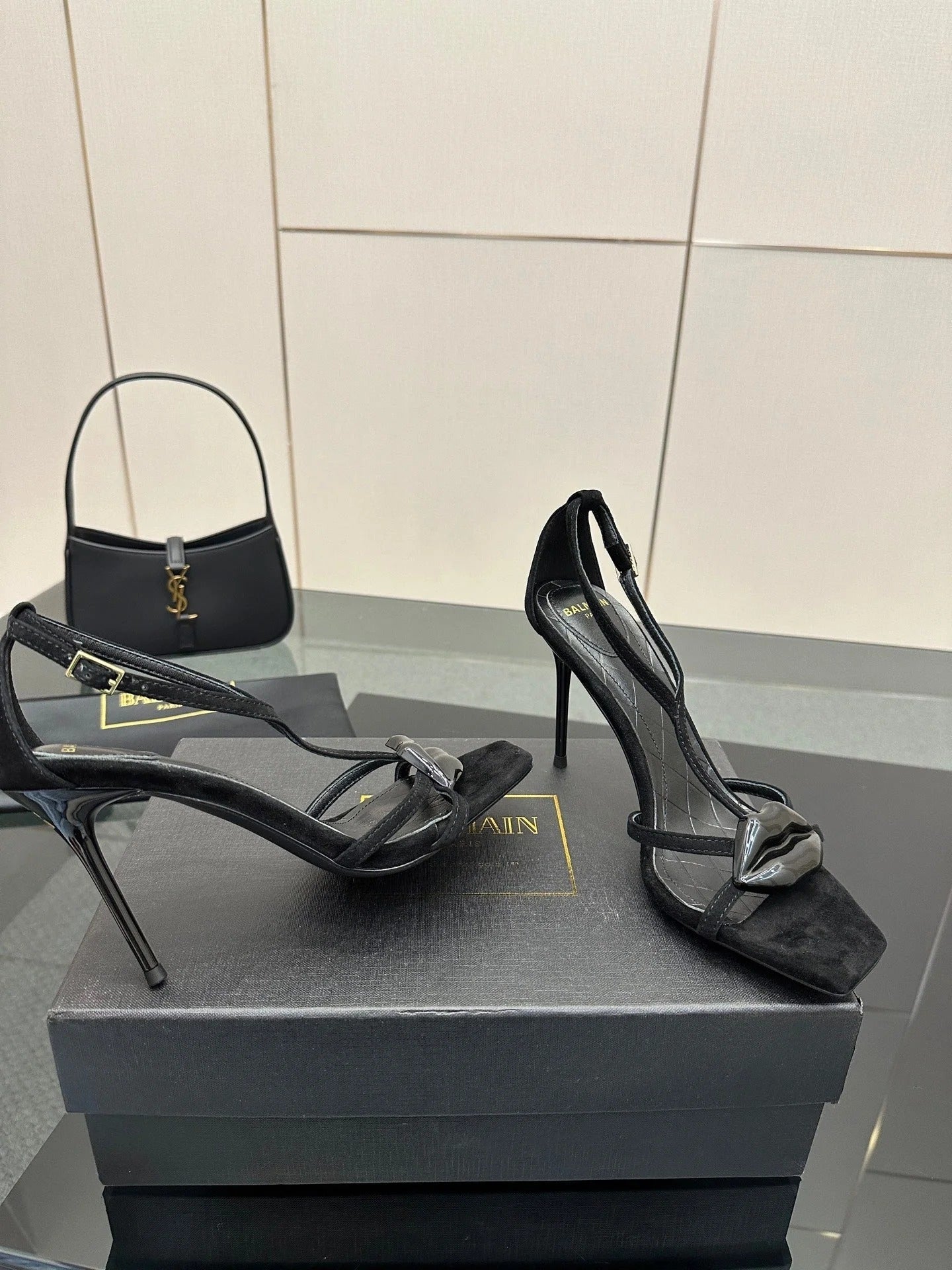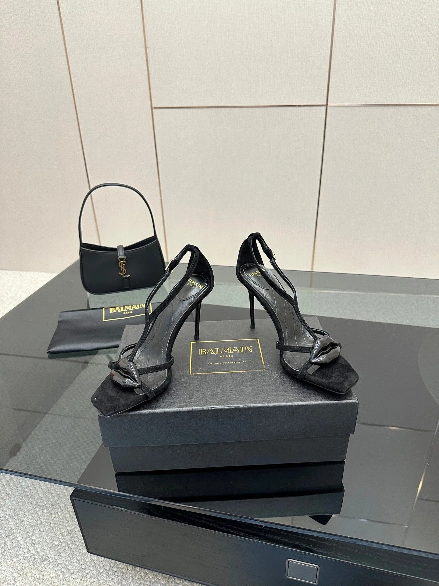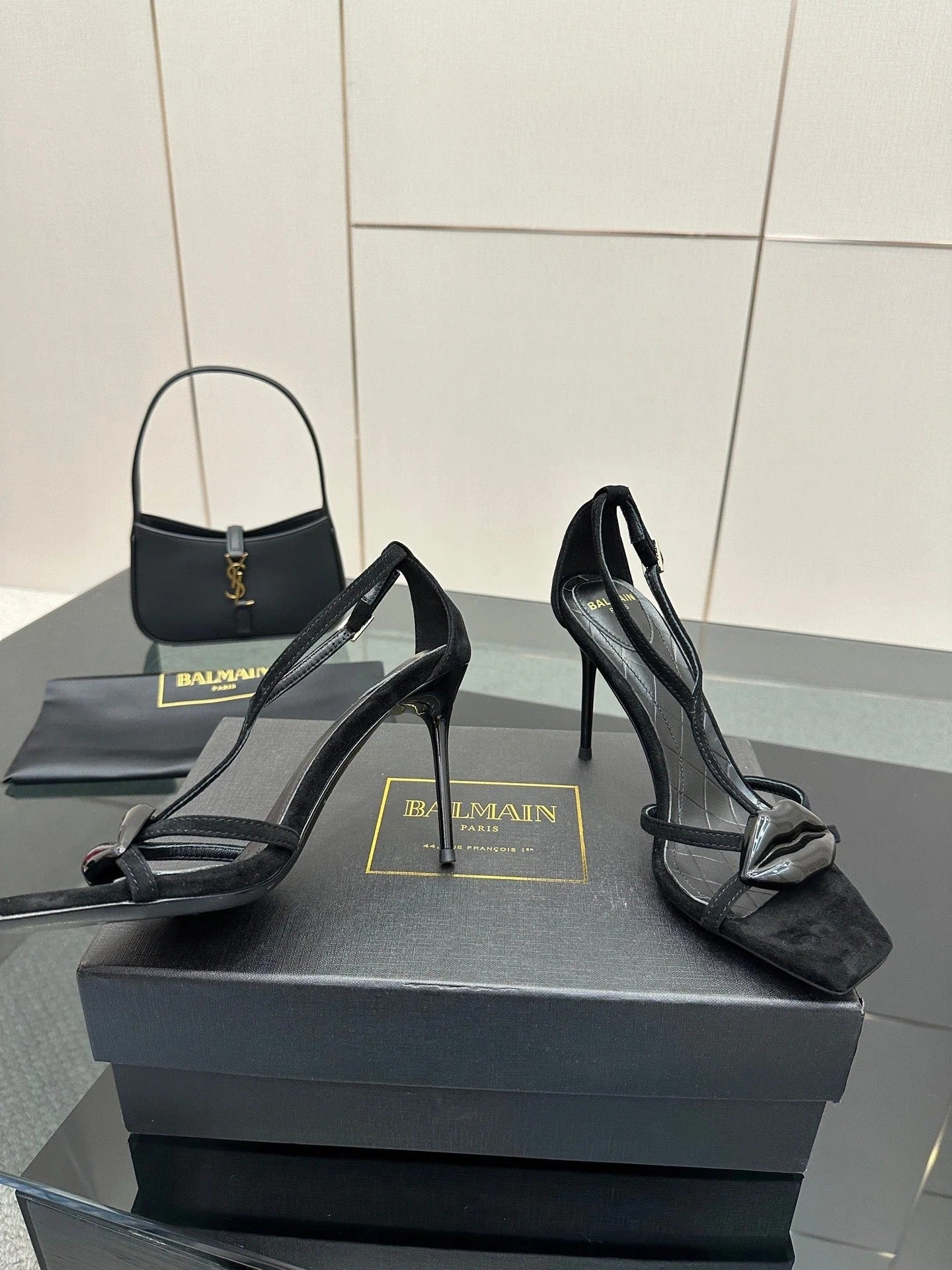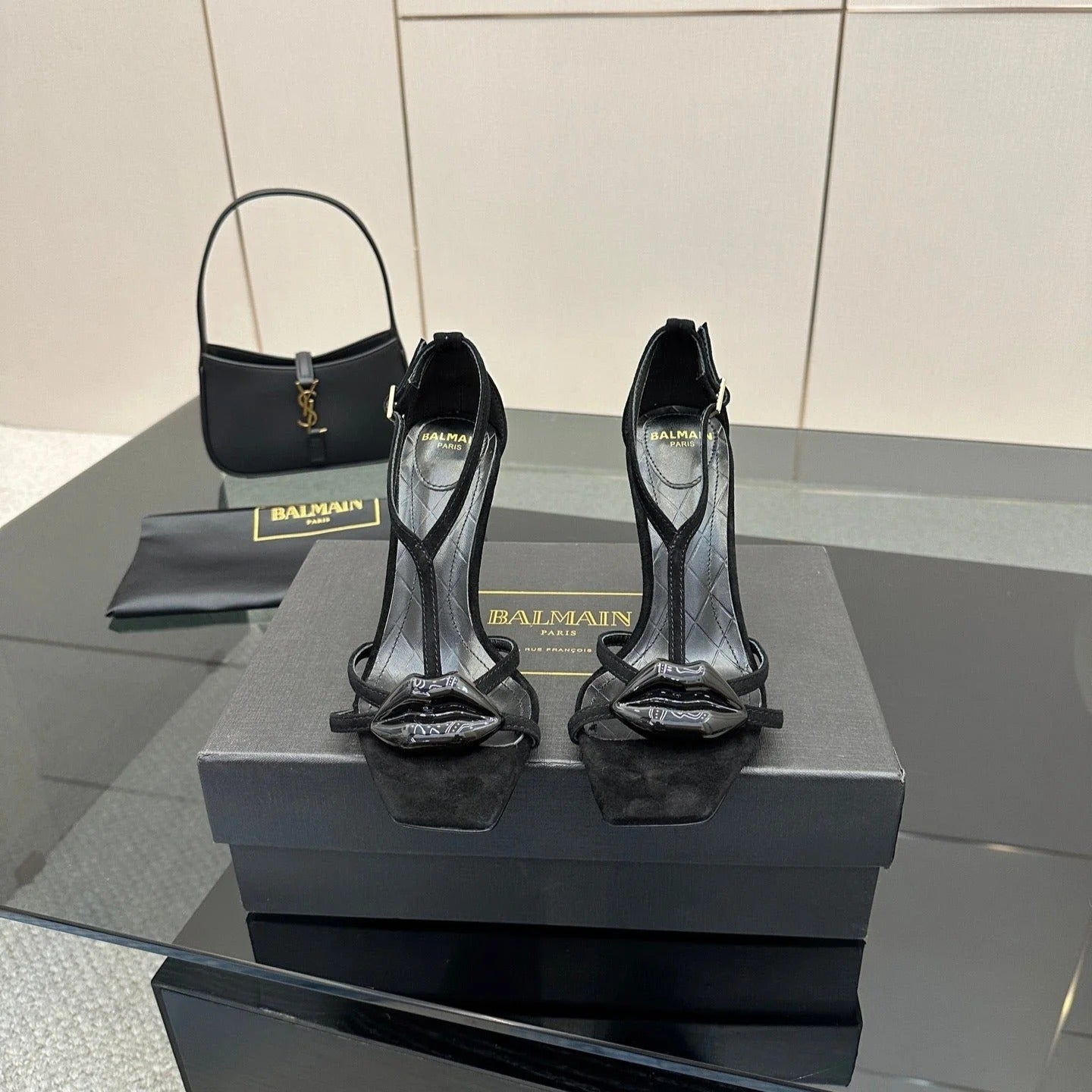 BALMAIN 25S LIPS SANDALS 10 IN BLACK SUEDE