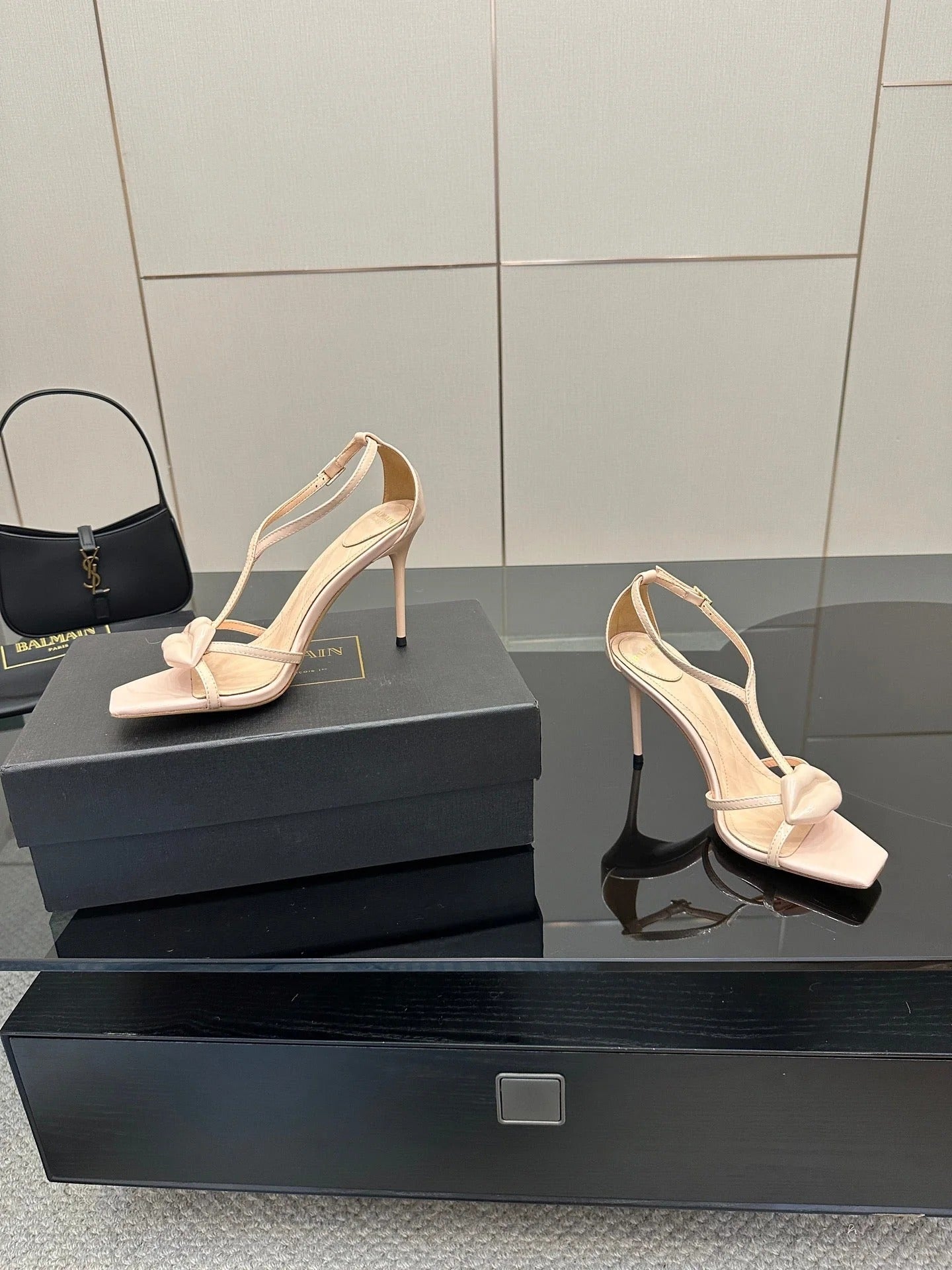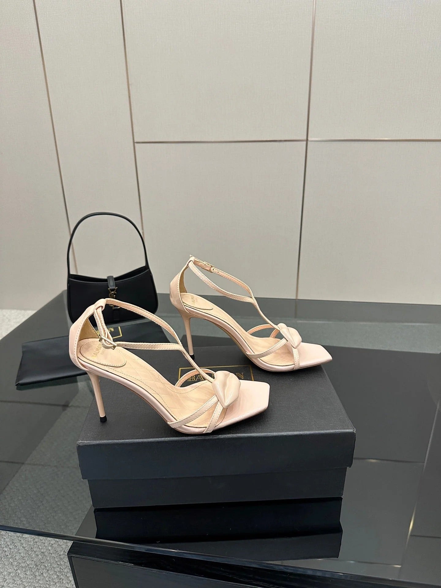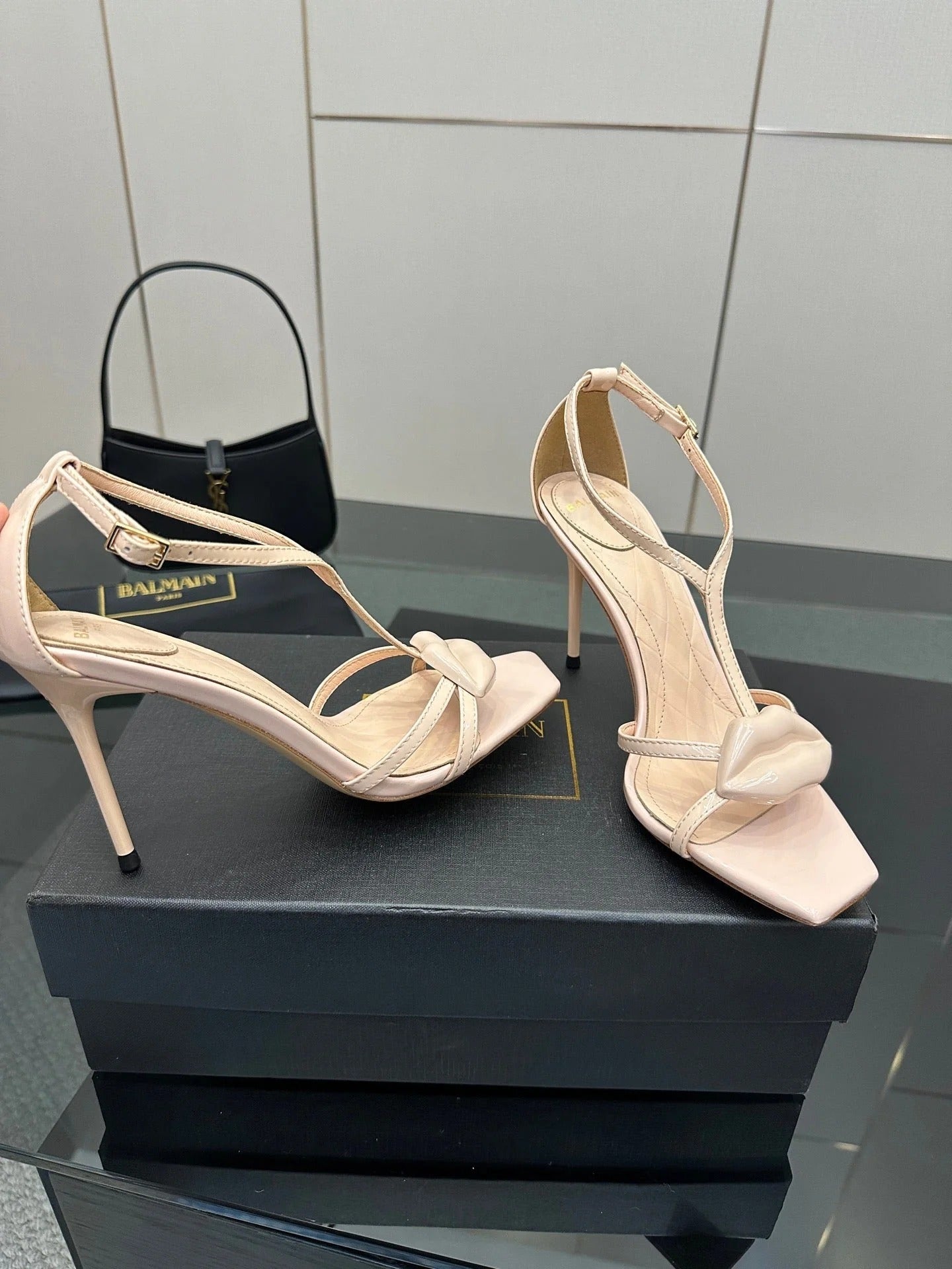 BALMAIN 25S LIPS SANDALS 10 IN BLUSH BEIGE CALFSKIN