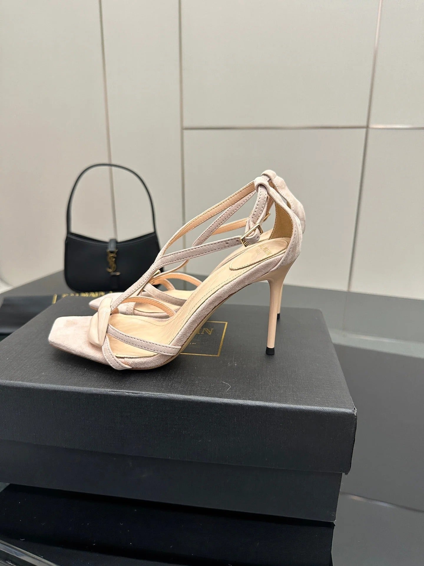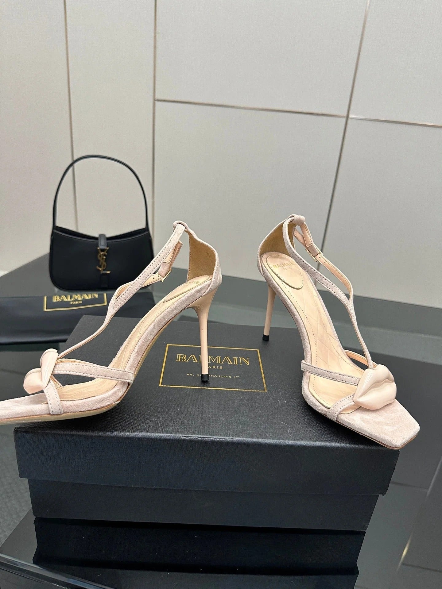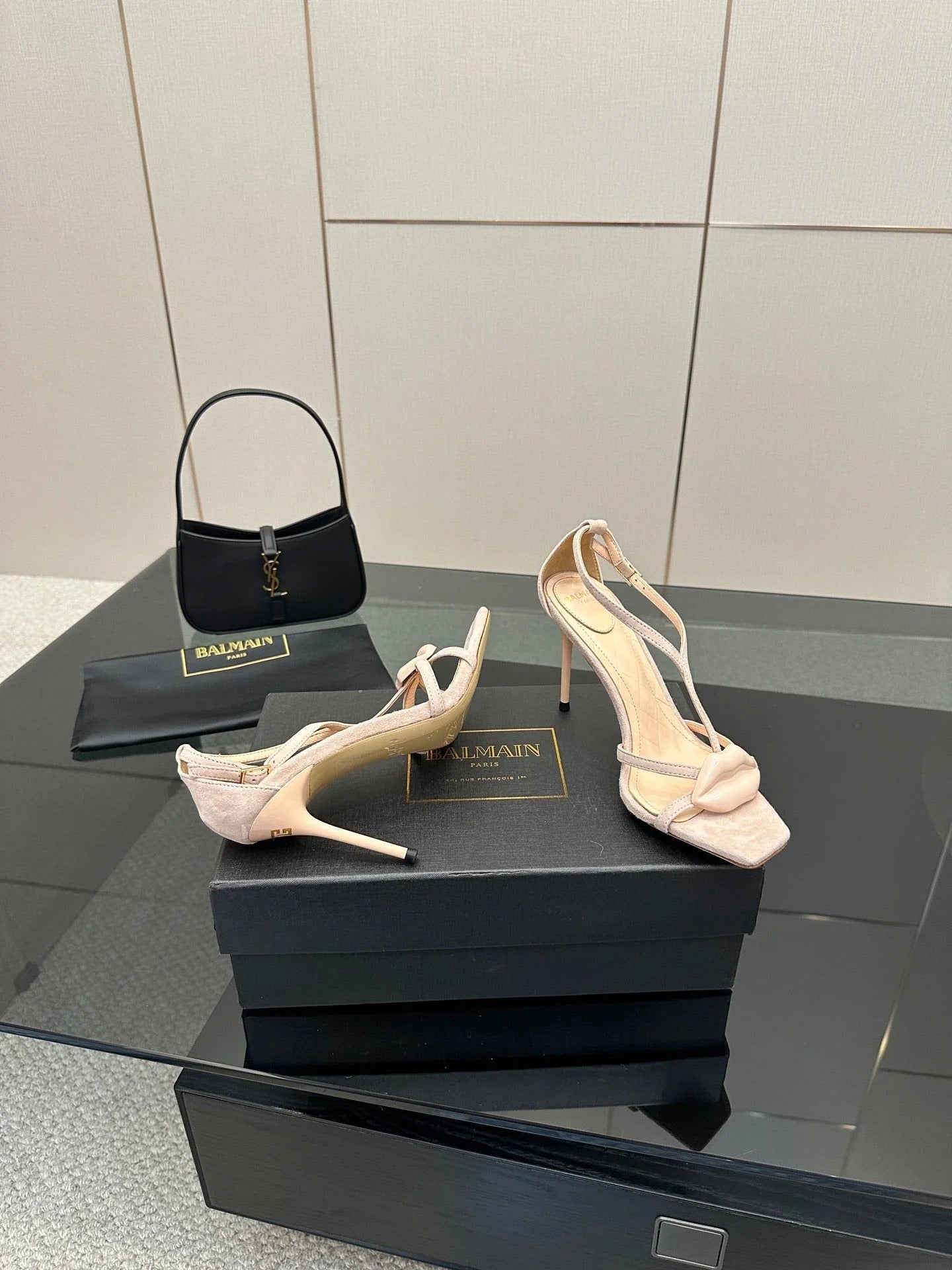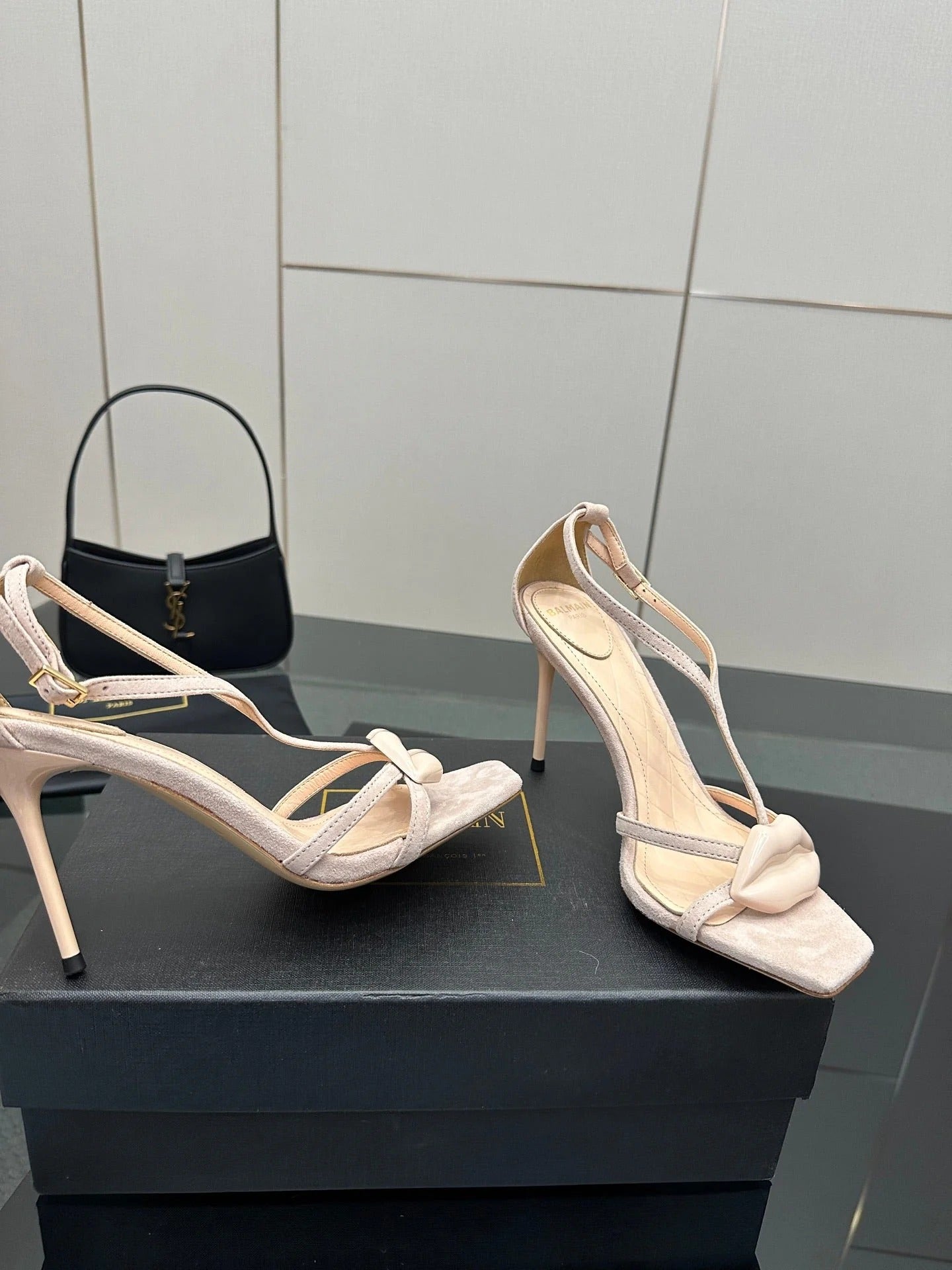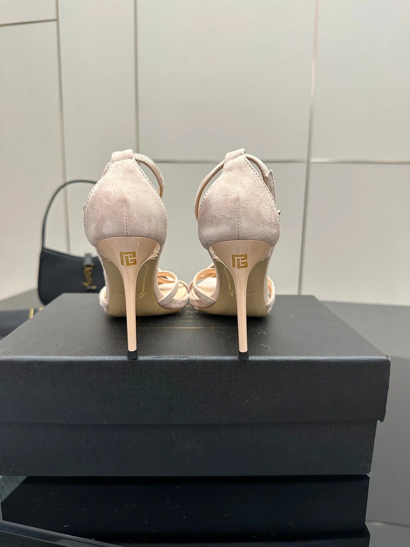 BALMAIN 25S LIPS SANDALS 10 IN BLUSH BEIGE SUEDE