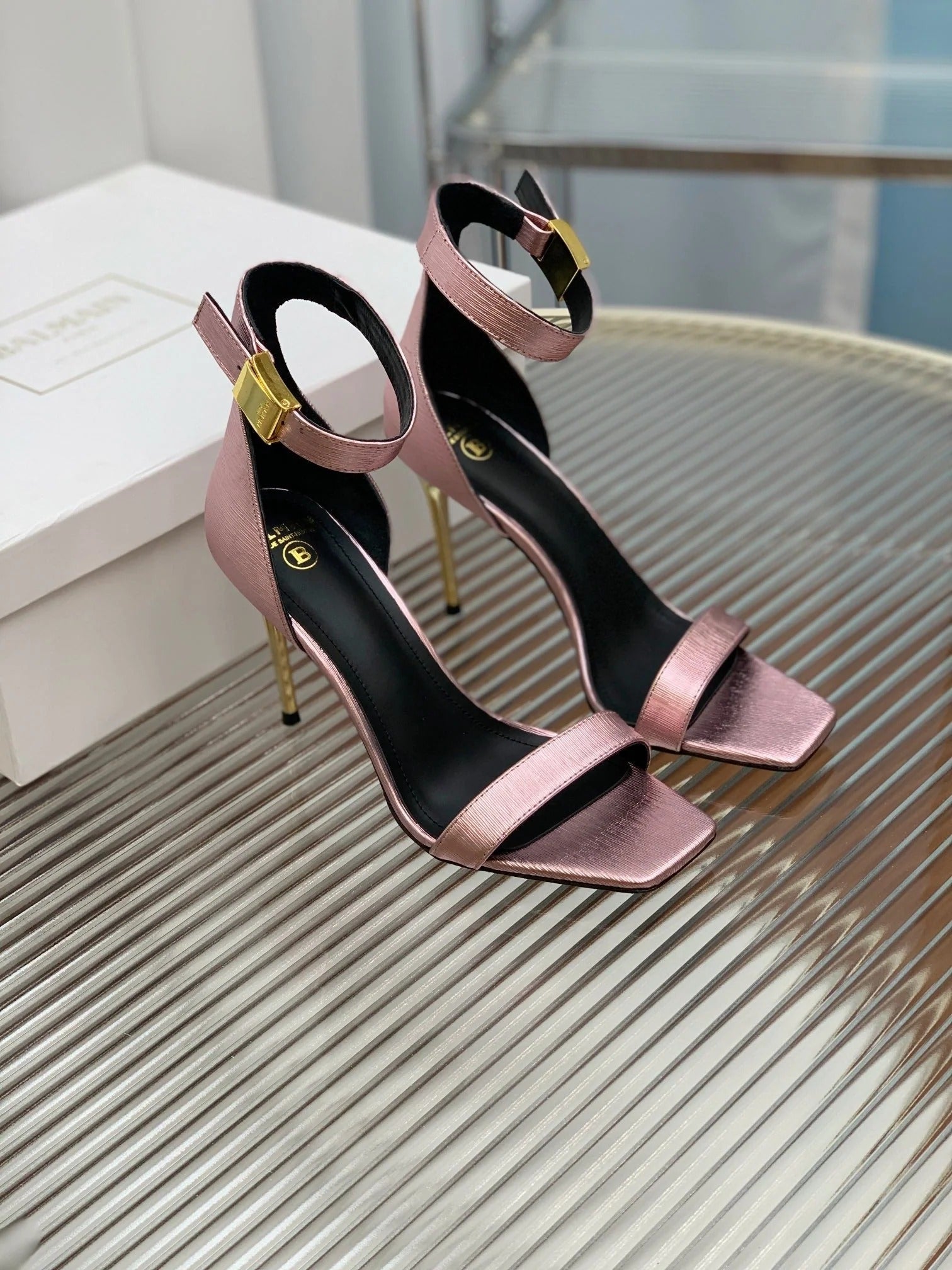 BALMAIN 25S METAL BUCKLE HIGH HEELS 95MM IN IRIDESCENT PURPLE CALFSKIN