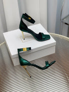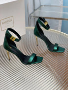 BALMAIN 25S METAL BUCKLE HIGH HEELS 95MM IN TEAL GREEN CALFSKIN