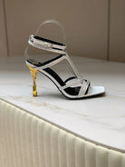 BALMAIN 25S MONETA SANDAL 95MM IN SILVER CALFSKIN WITH CRYSTAL