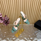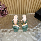 BALMAIN 25S MULES IN STRIPED LEATHER 95MM IN DUSTY GREEN CALFSKIN GOLD HARDWARE