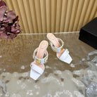 BALMAIN 25S MULES IN STRIPED LEATHER 95MM IN WHITE CALFSKIN GOLD HARDWARE