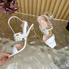 BALMAIN 25S RHINESTONE STILETTO SANDALS 95MM IN WHITE CALFSKIN