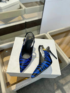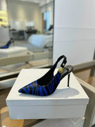 BALMAIN 25S SLINGBACK EVA 95MM IN BLUE AND BLACK ZEBRA PRINT CALFSKIN