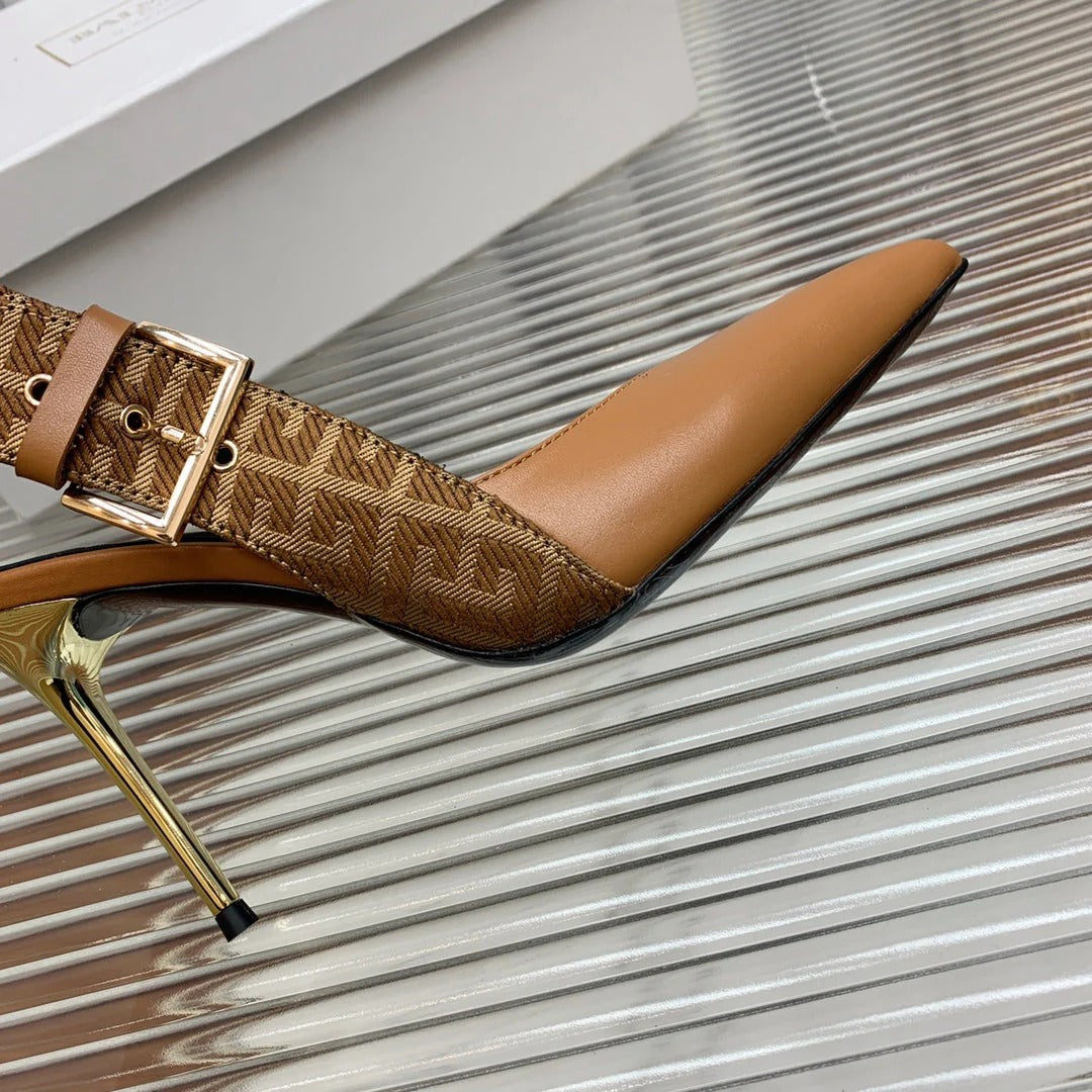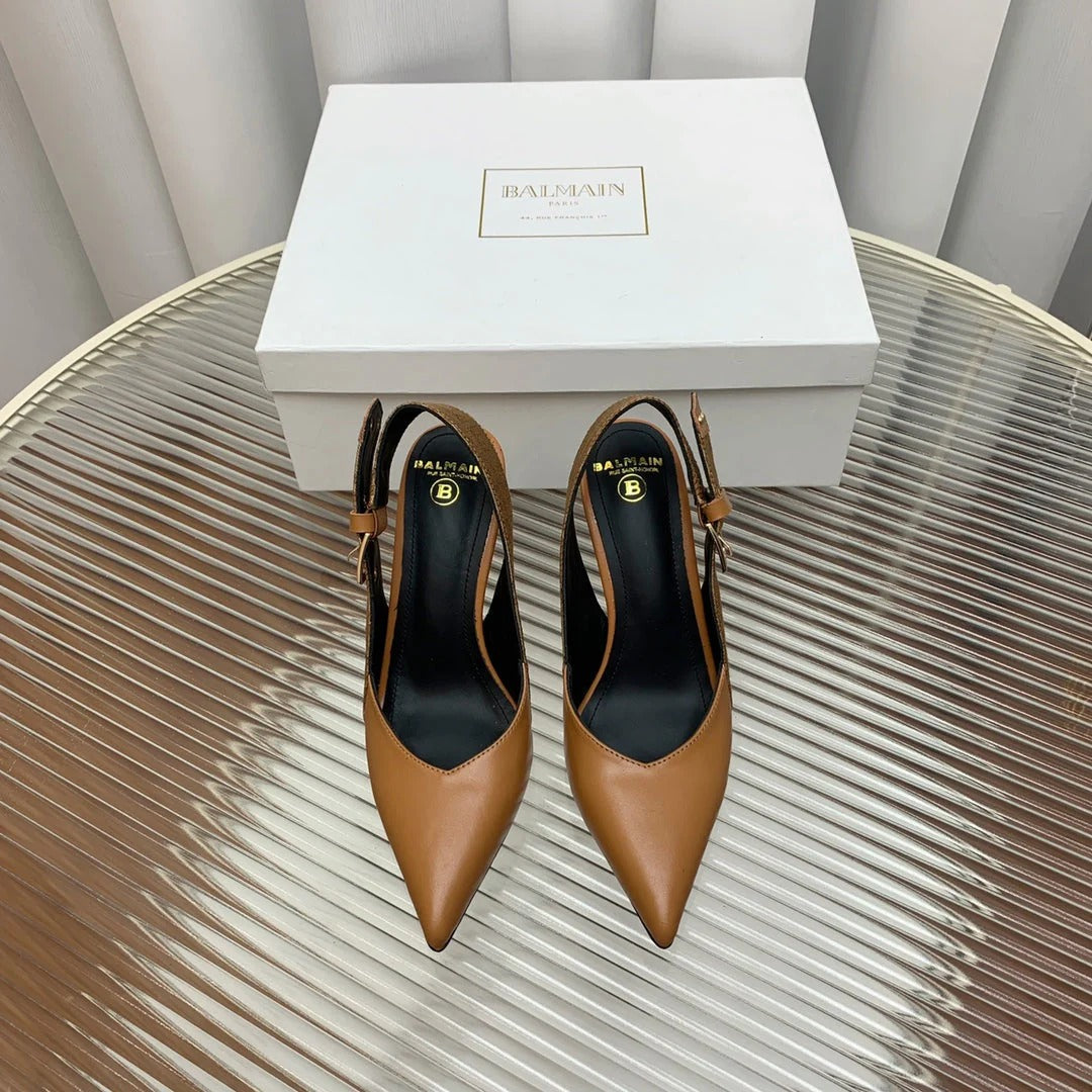 BALMAIN 25S SLINGBACK SHOES 95MM IN DARK BROWN CALFSKIN