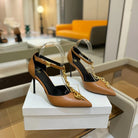 BALMAIN 25S SYNC STILETTOS WITH POINTED TOE 95MM IN DARK BROWN CALFSKIN