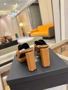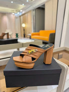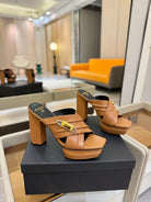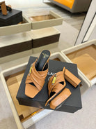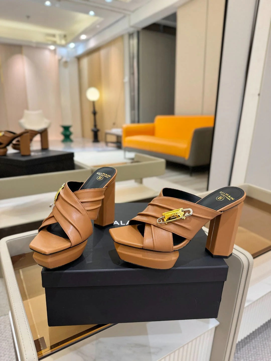 BALMAIN 25S WEDGE HEEL SANDALS 100MM IN BROWN CALFSKIN
