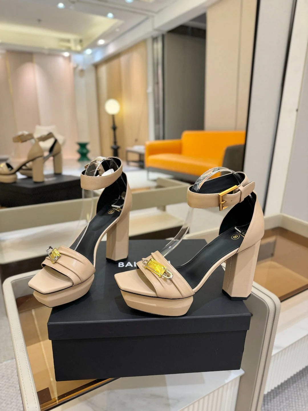 BALMAIN 25S WEDGE HEELS 100MM IN NUDE CALFSKIN