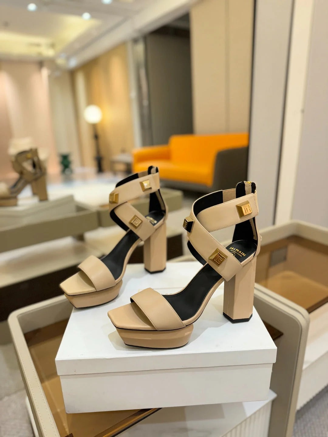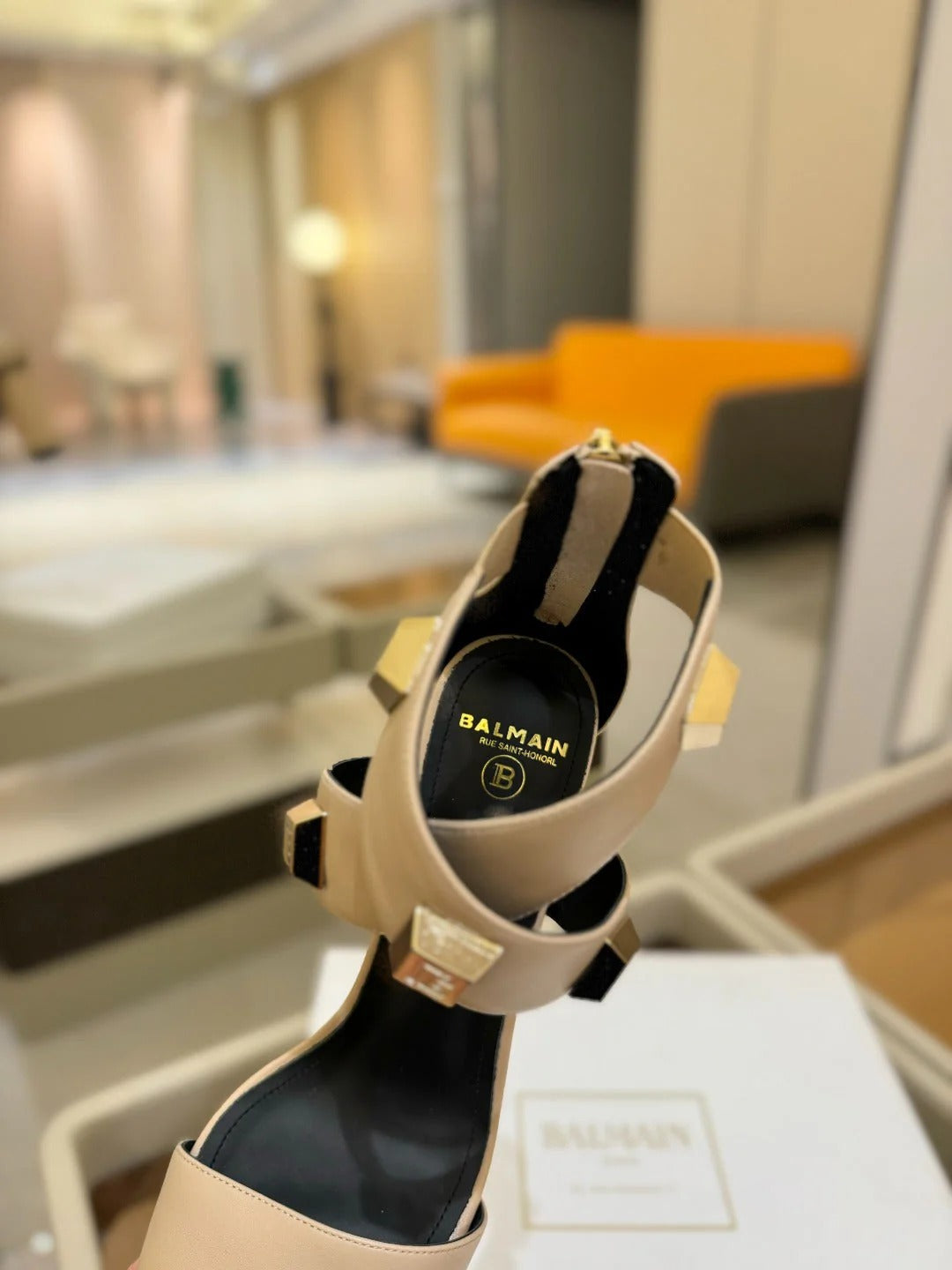 BALMAIN 25S WEDGE HEELS 105MM IN BEIGE CALFSKIN GOLD HARDWARE