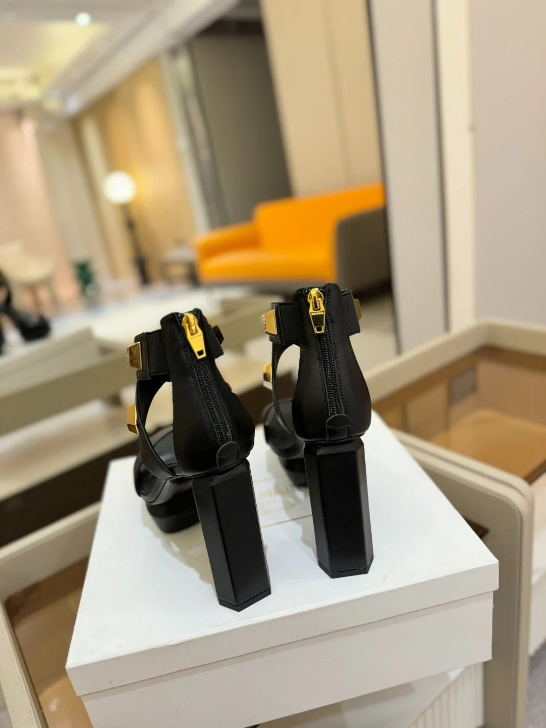 BALMAIN 25S WEDGE HEELS 105MM IN BLACK CALFSKIN GOLD HARDWARE