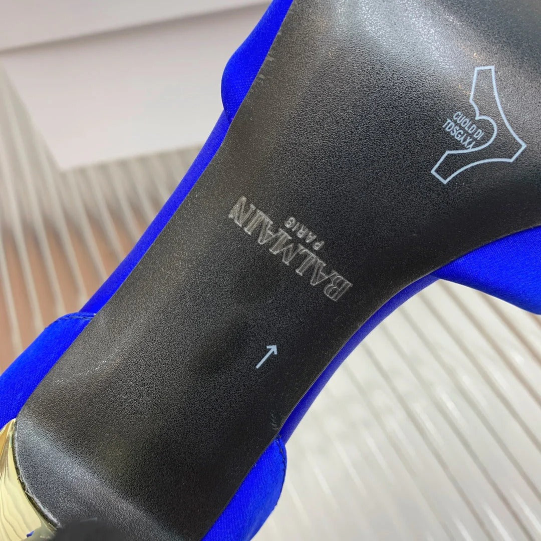 BALMAIN 25S SQUARE STRAP HIGH HEELS 100MM IN BLUE PATENT CALFSKIN