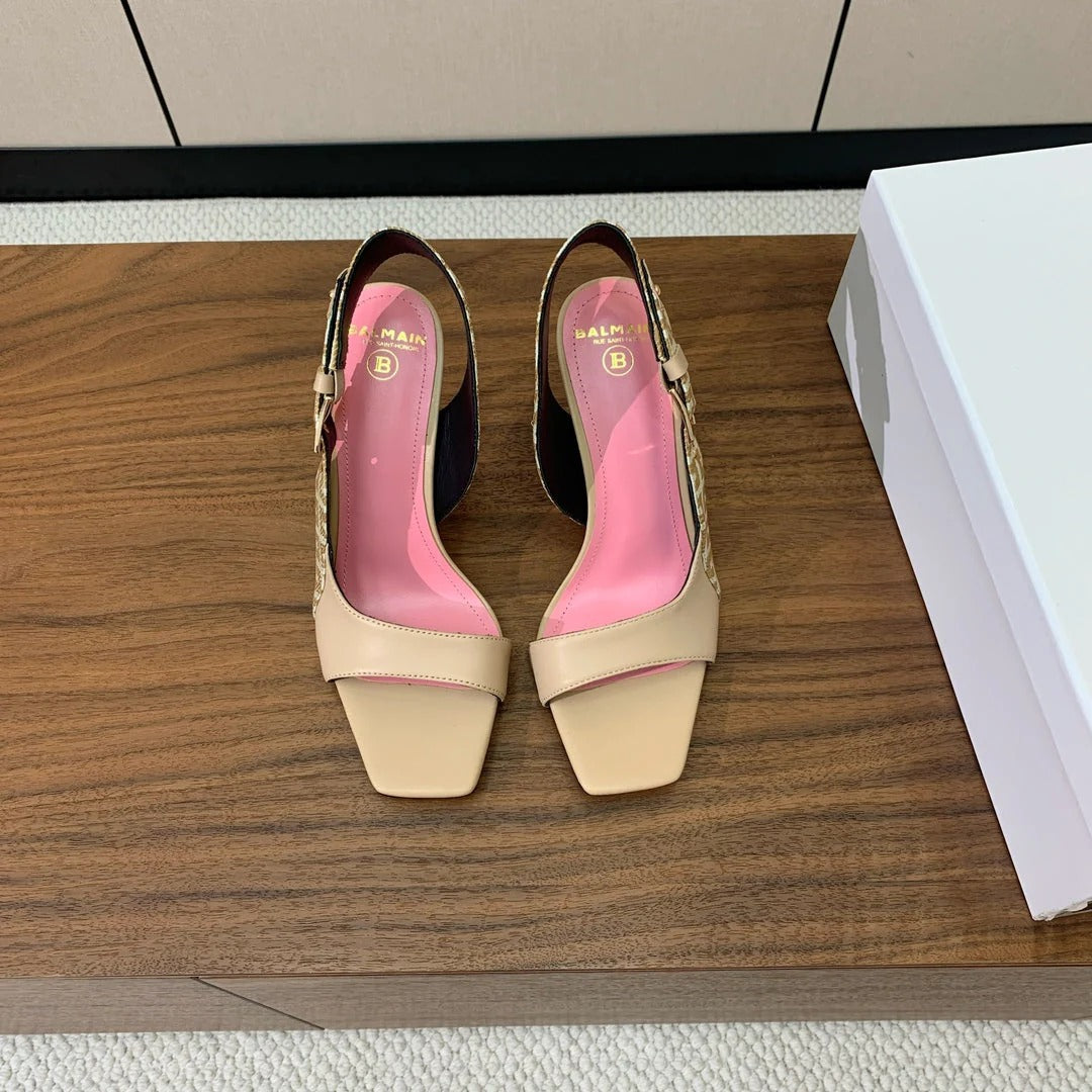 BALMAIN 25S WEDGE HEEL SANDALS 100MM IN NUDE CALFSKIN