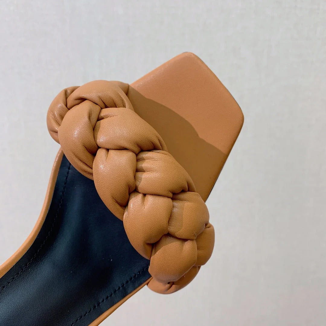 BALMAIN 25S KNOTTED HIGH HEELS 95MM IN LIGHT CARAMEL SATIN