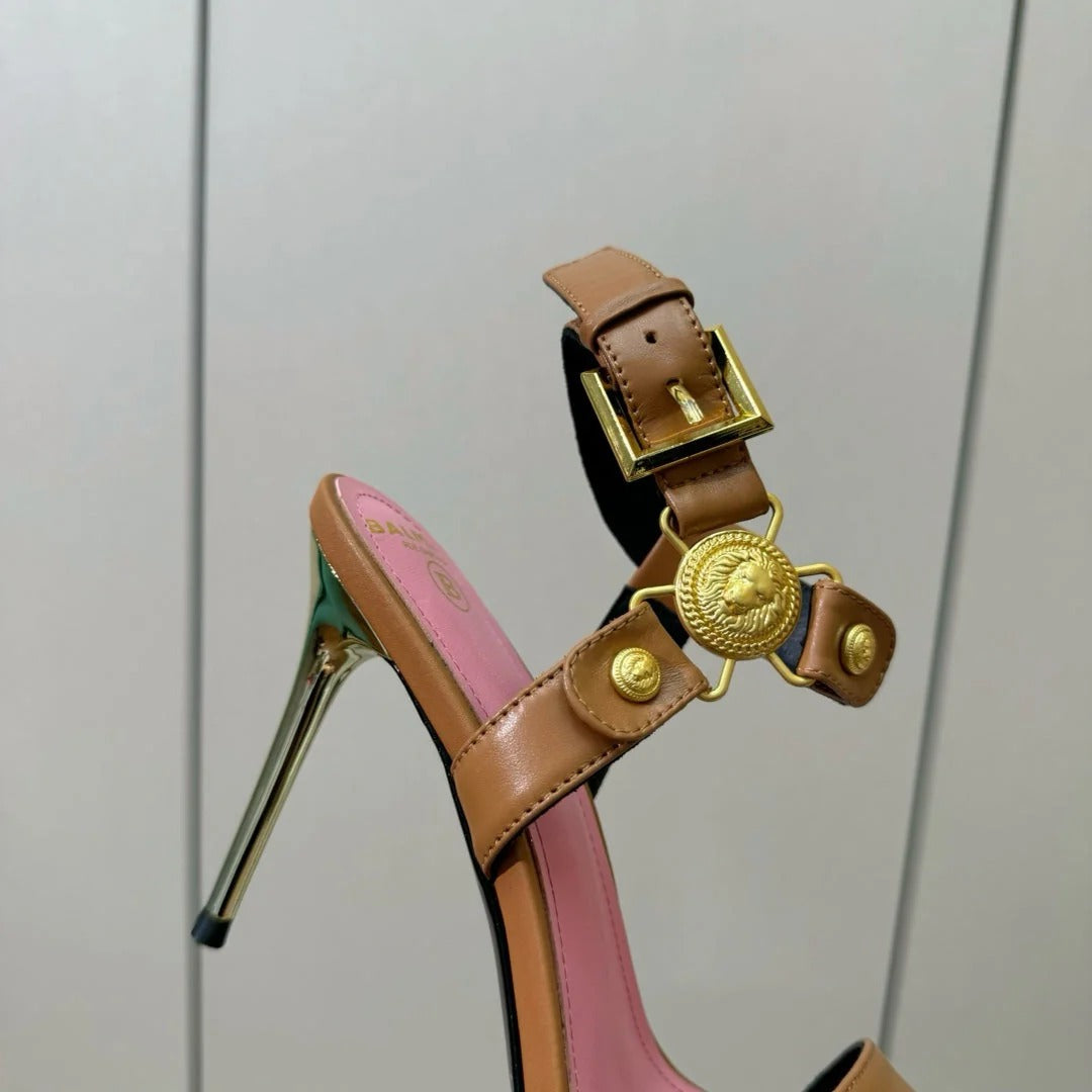 BALMAIN 25S ANKLE STRAP HIGH HEEL 95MM IN BROWN CALFSKIN