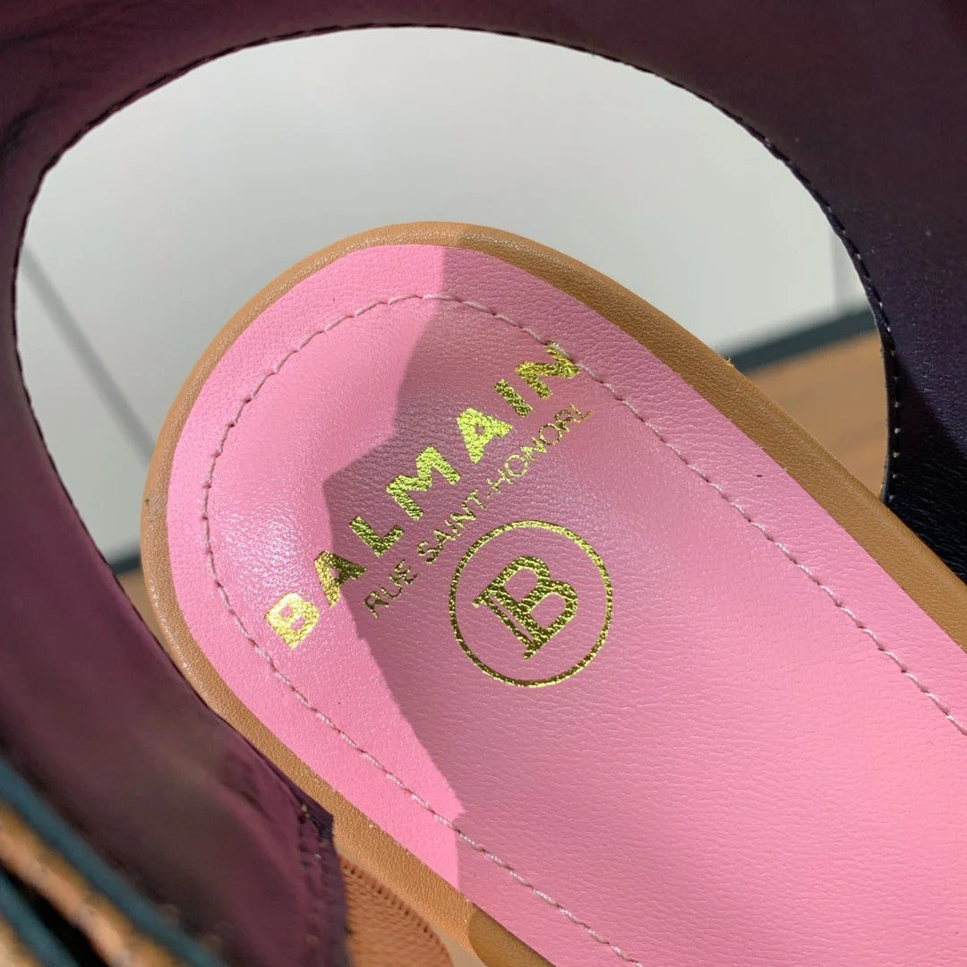BALMAIN 25S HEELED EVA SANDALS 95MM IN BROWN AND PINK CALFSKIN