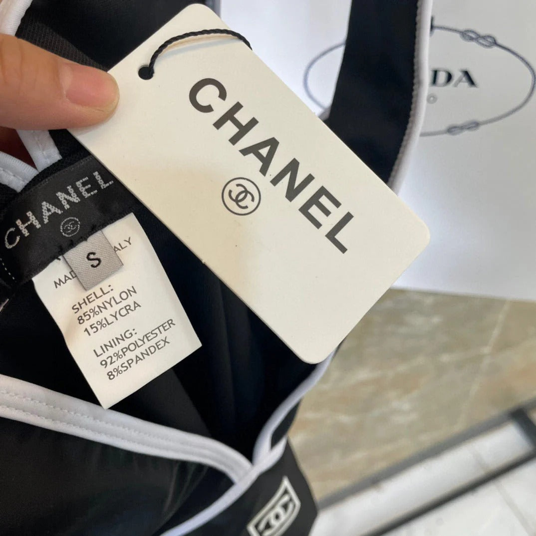 CC BIKINI SWIMSUIT SET IN BLACK AND WHITE TRIM 613725