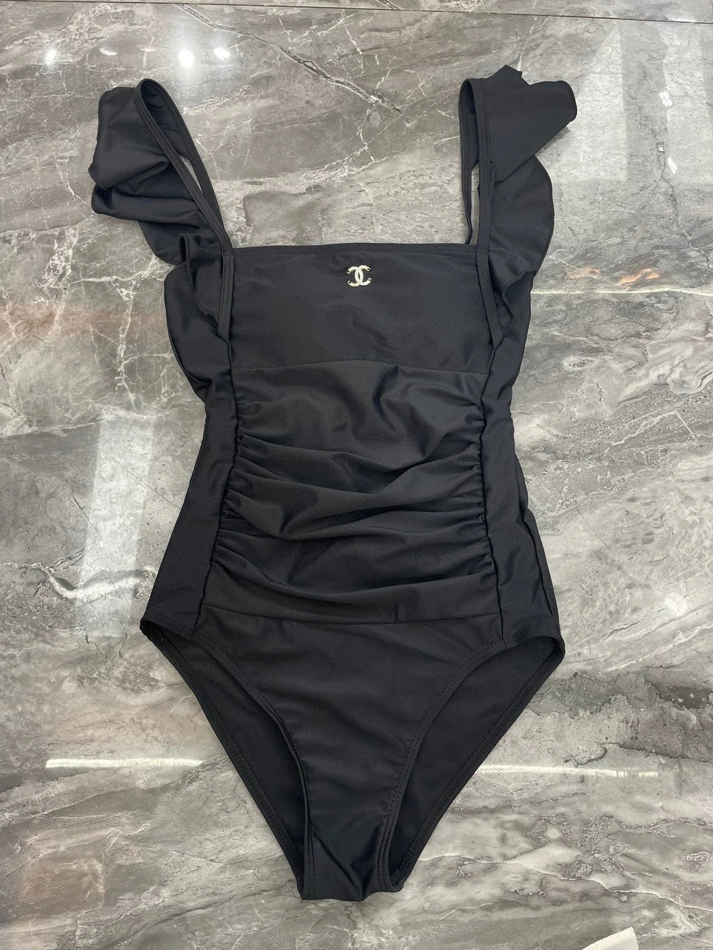 CC BIKINI SWIMSUIT SET IN BLACK ATTACHED WITH GOLD METAL LOGO 615196