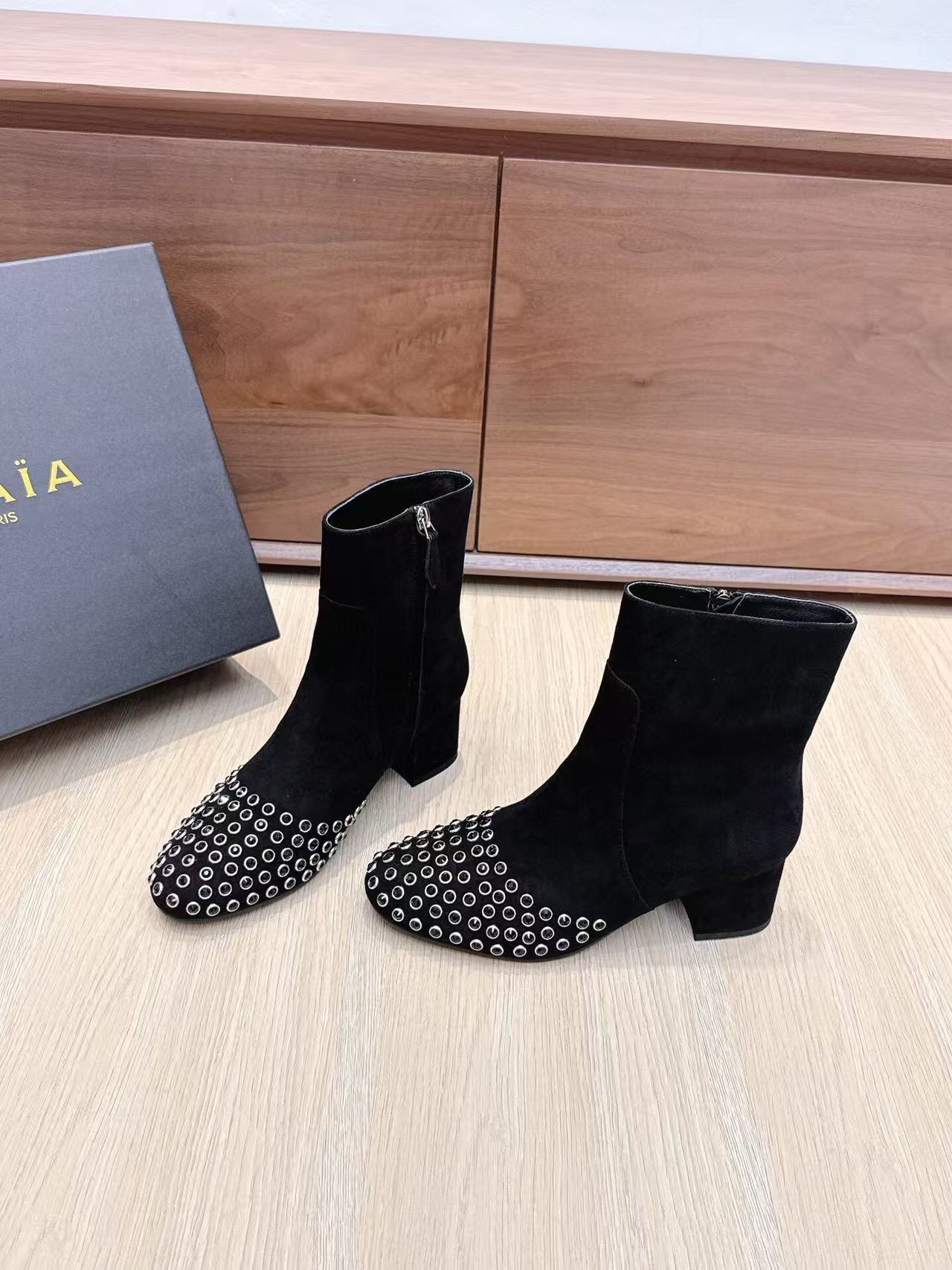 Alaïa Embellished Ankle Boots 60 Black Suede