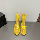 ALAIA SHORT BOOTS IN LEMON YELLOW MESH FISHNET