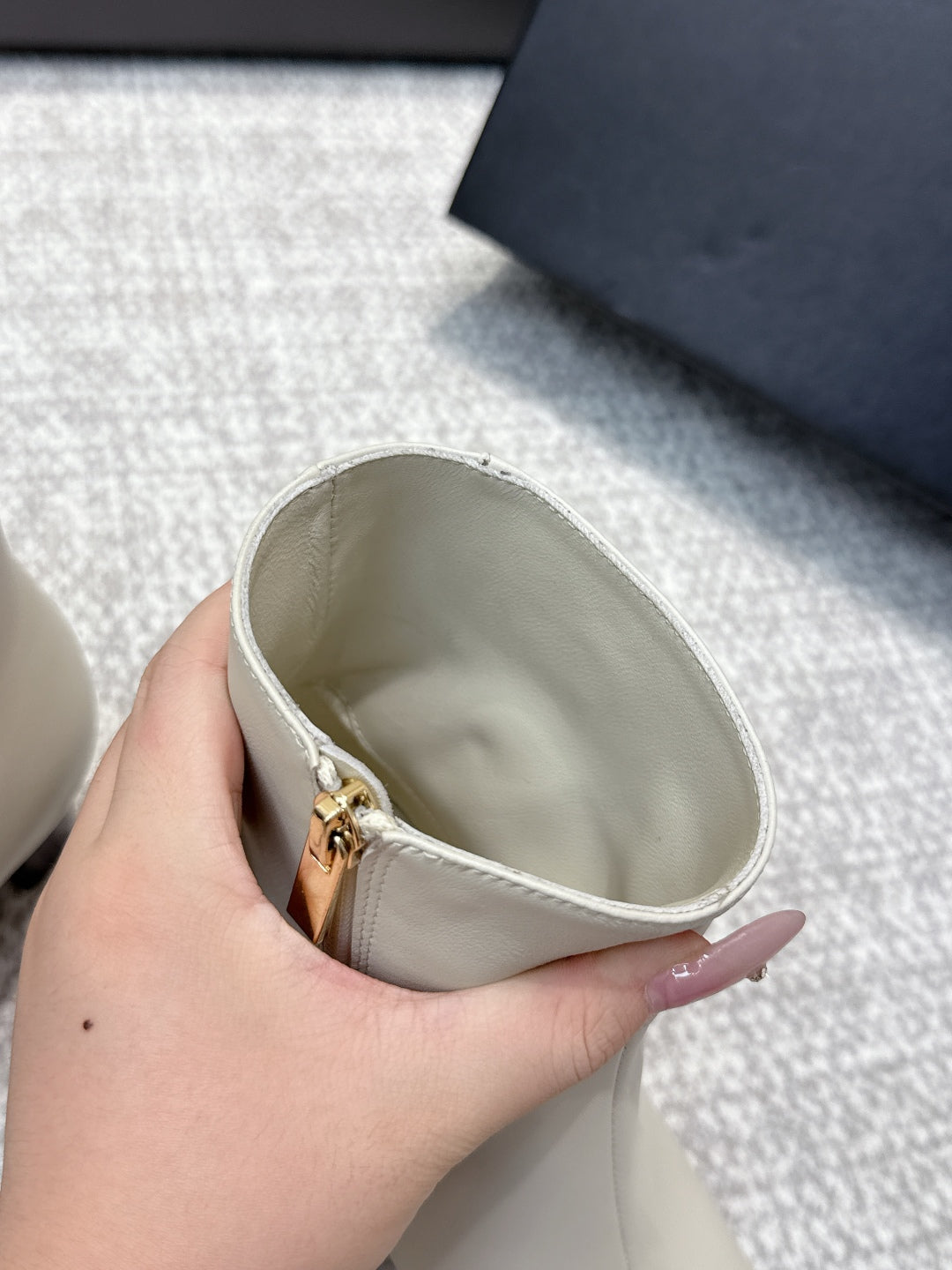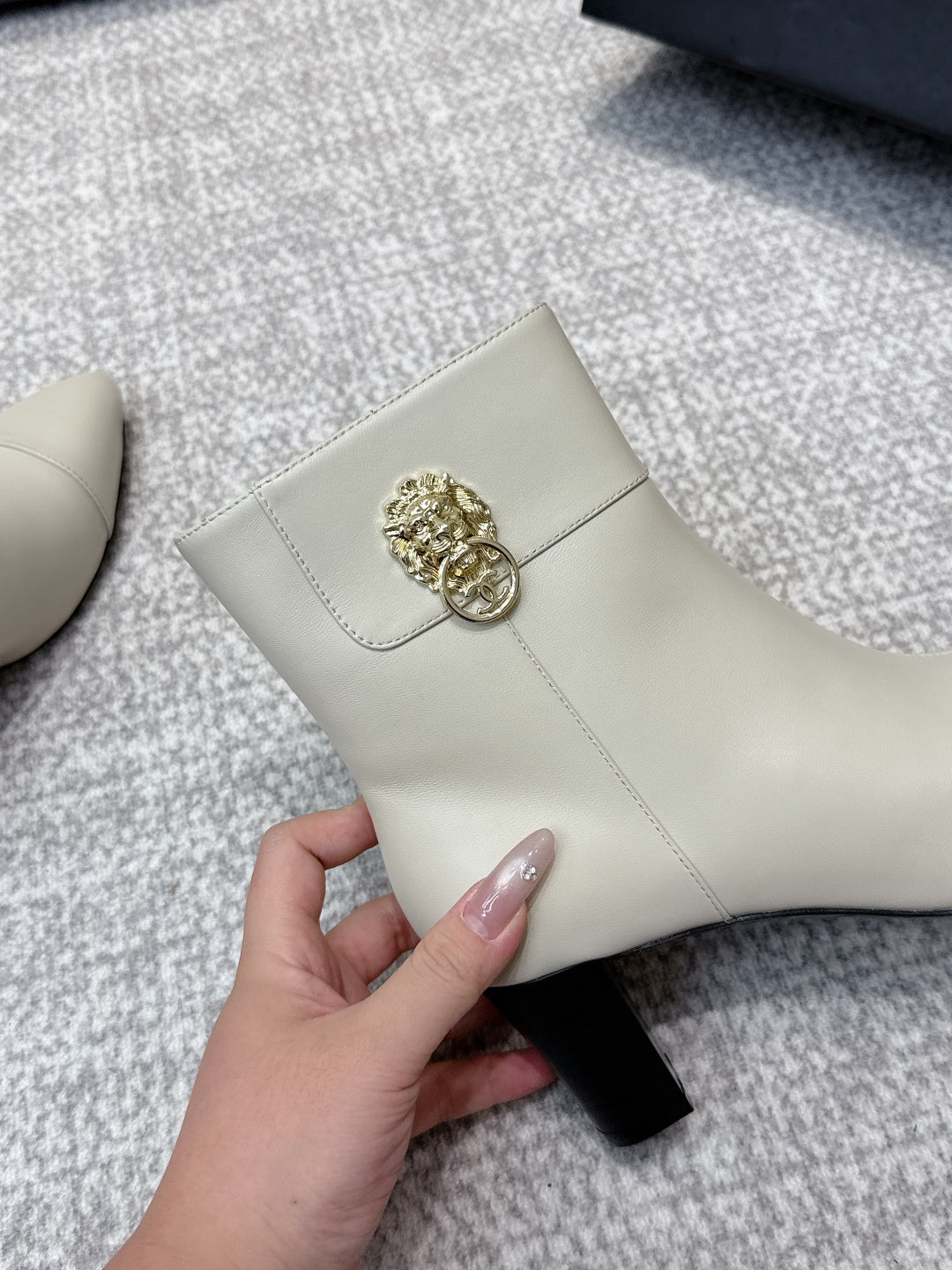 CC 2025s Lion Pointed Toe Ankle Boots 50mm White Sheepskin 461624