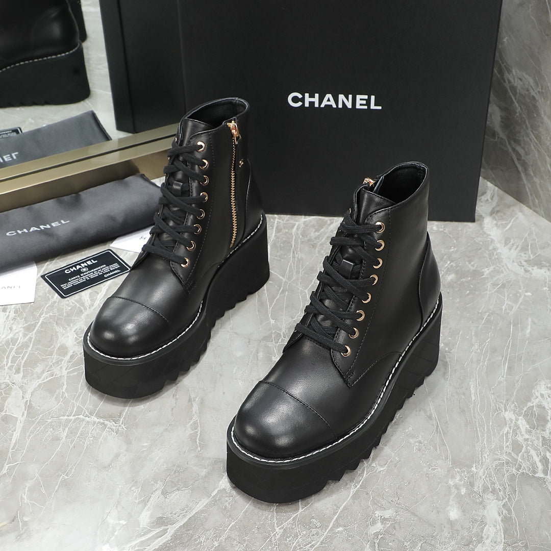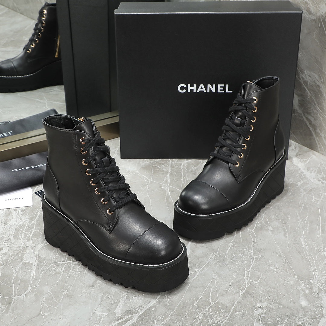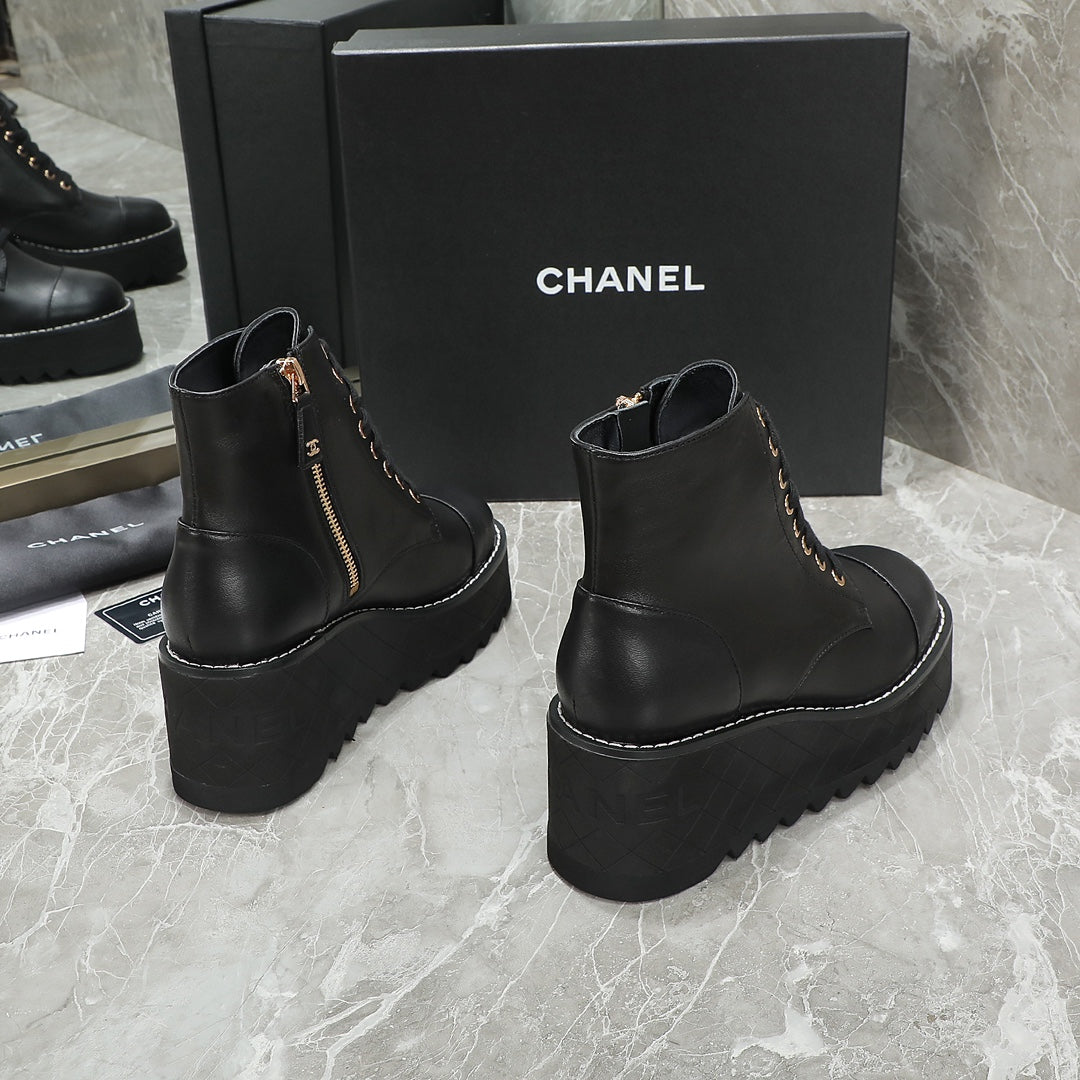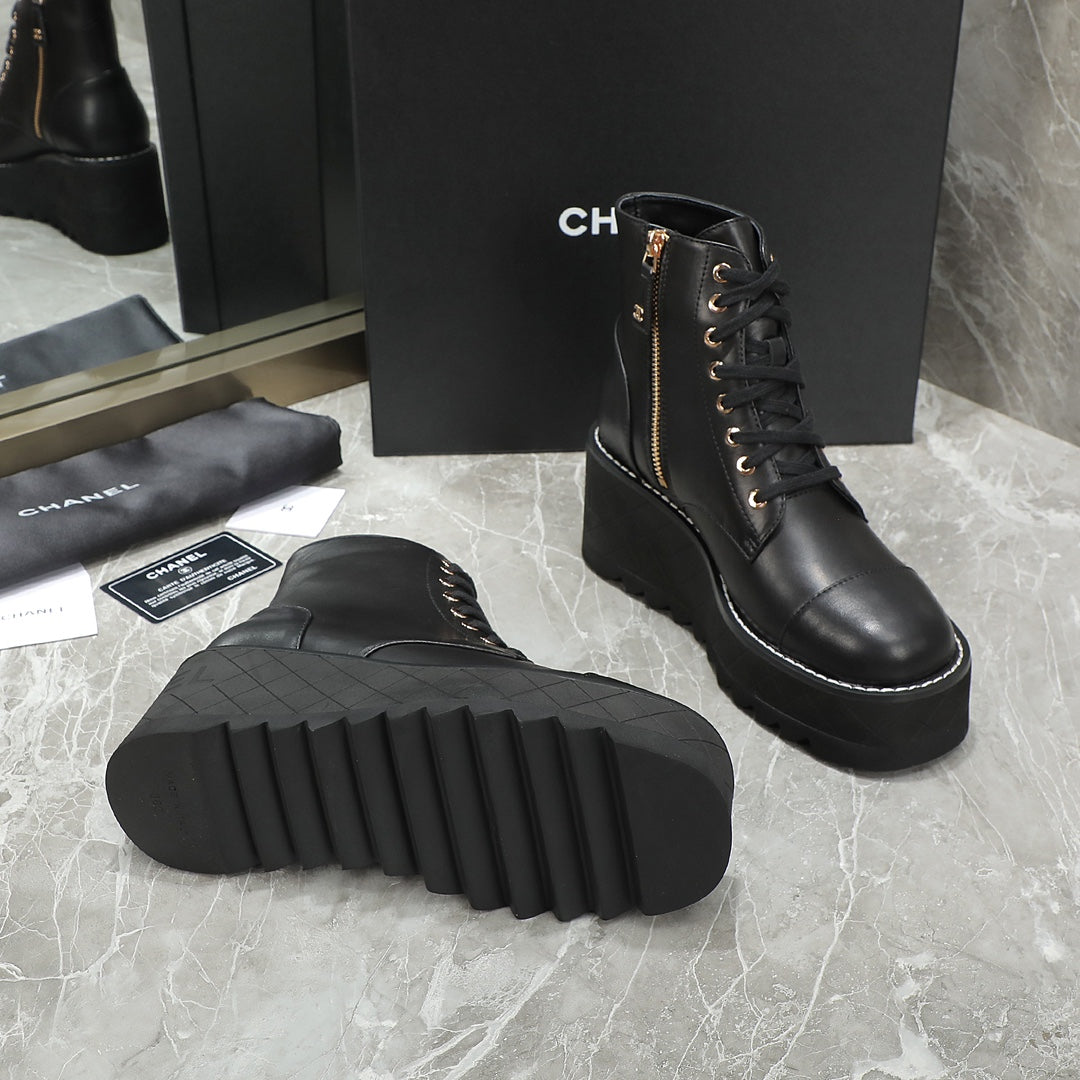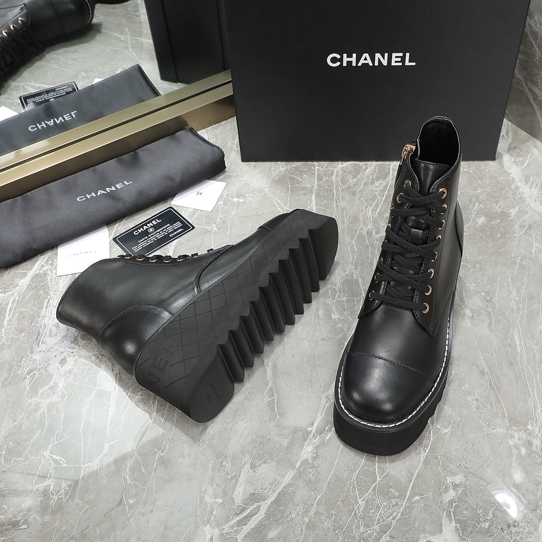 CC 24 Interlocking Logo Combat Boots 100mm Black Lambskin 432652