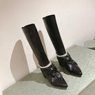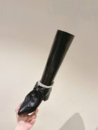 CC 24A Pearl Bow Knee-High Boots 65mm Black Sheepskin 447462