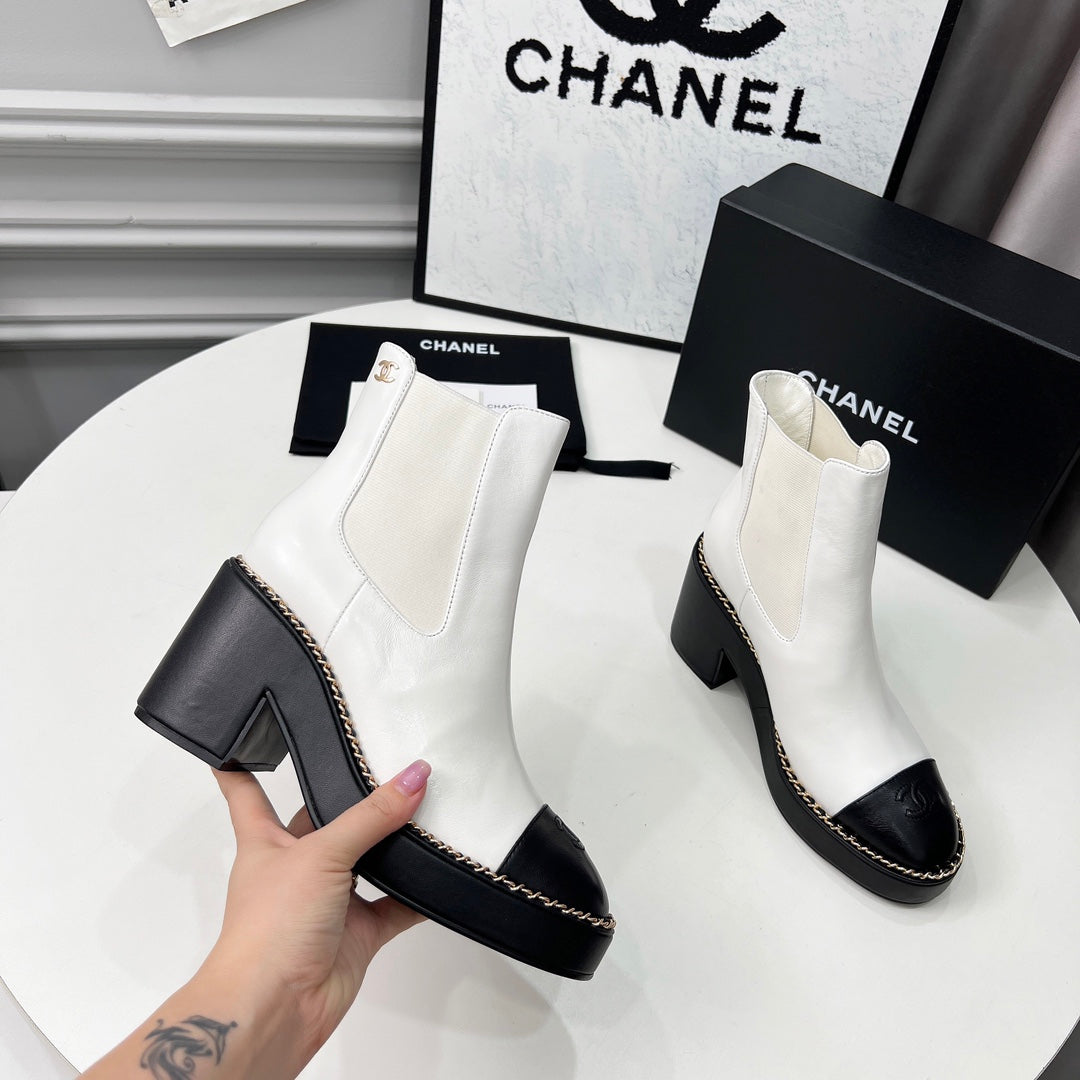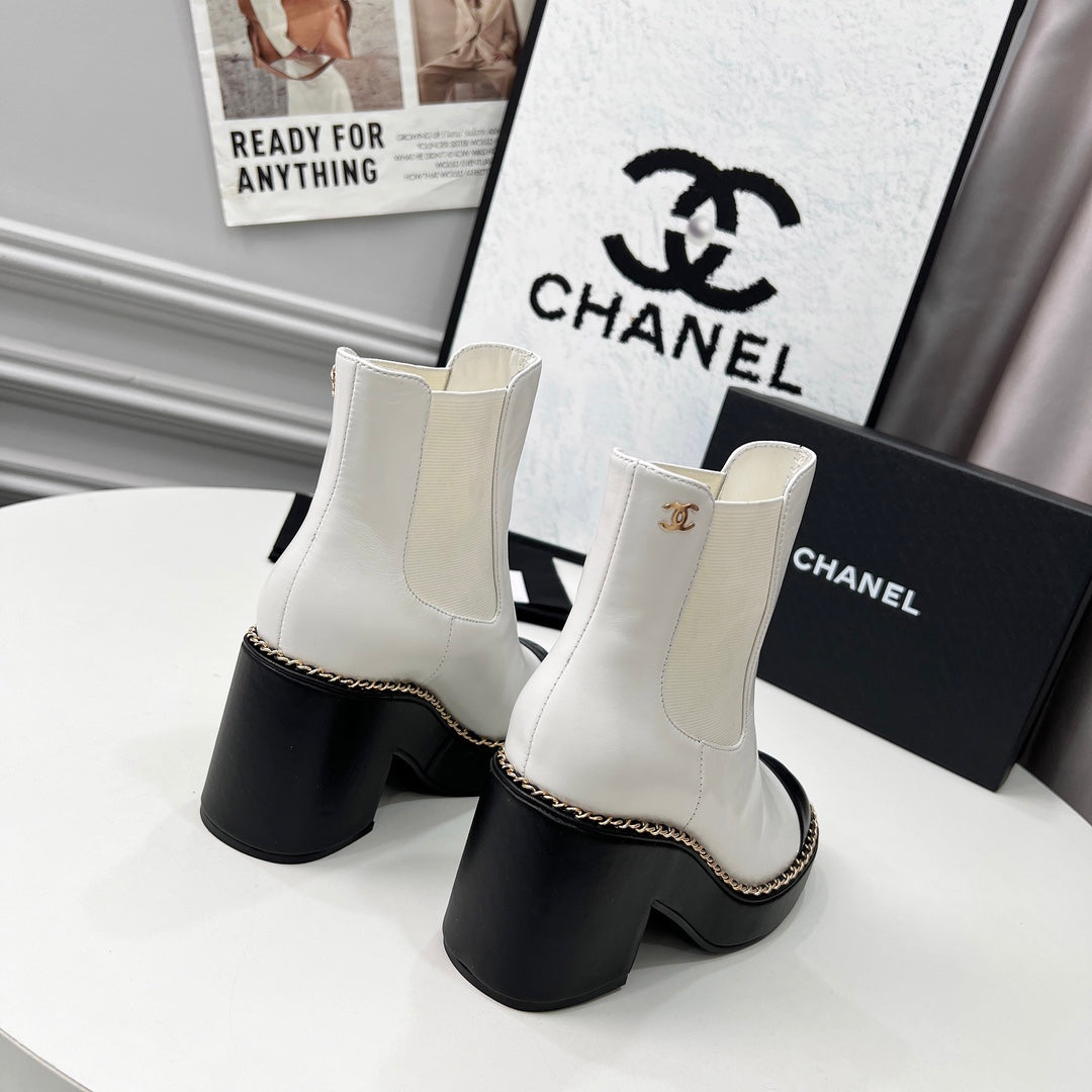 CC 25 Chelsea Ankle Boots With Chain 85mm White Black Sheepskin 374033