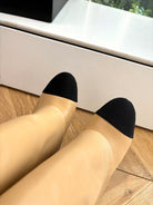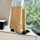 CC 25 High Boot Beige Calfskin Black Grosgrain 430337