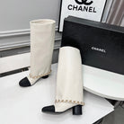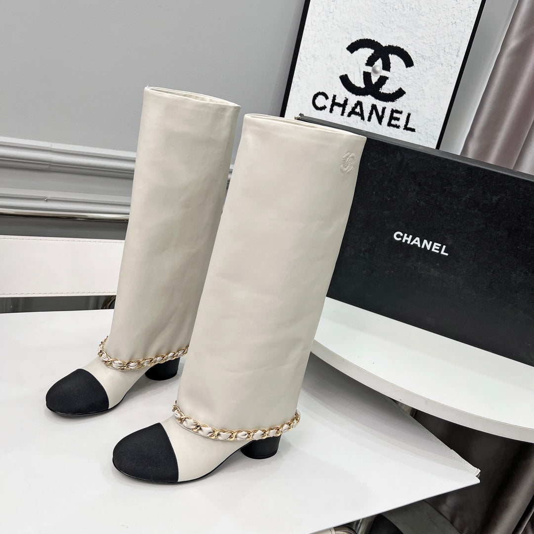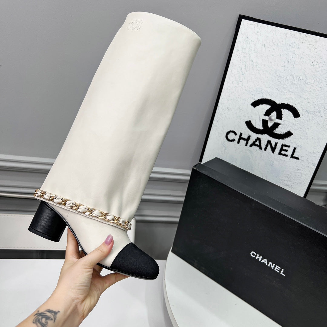 CC 25 High Boots With Chain 55mm White Cowhide Black Grosgrain 374024