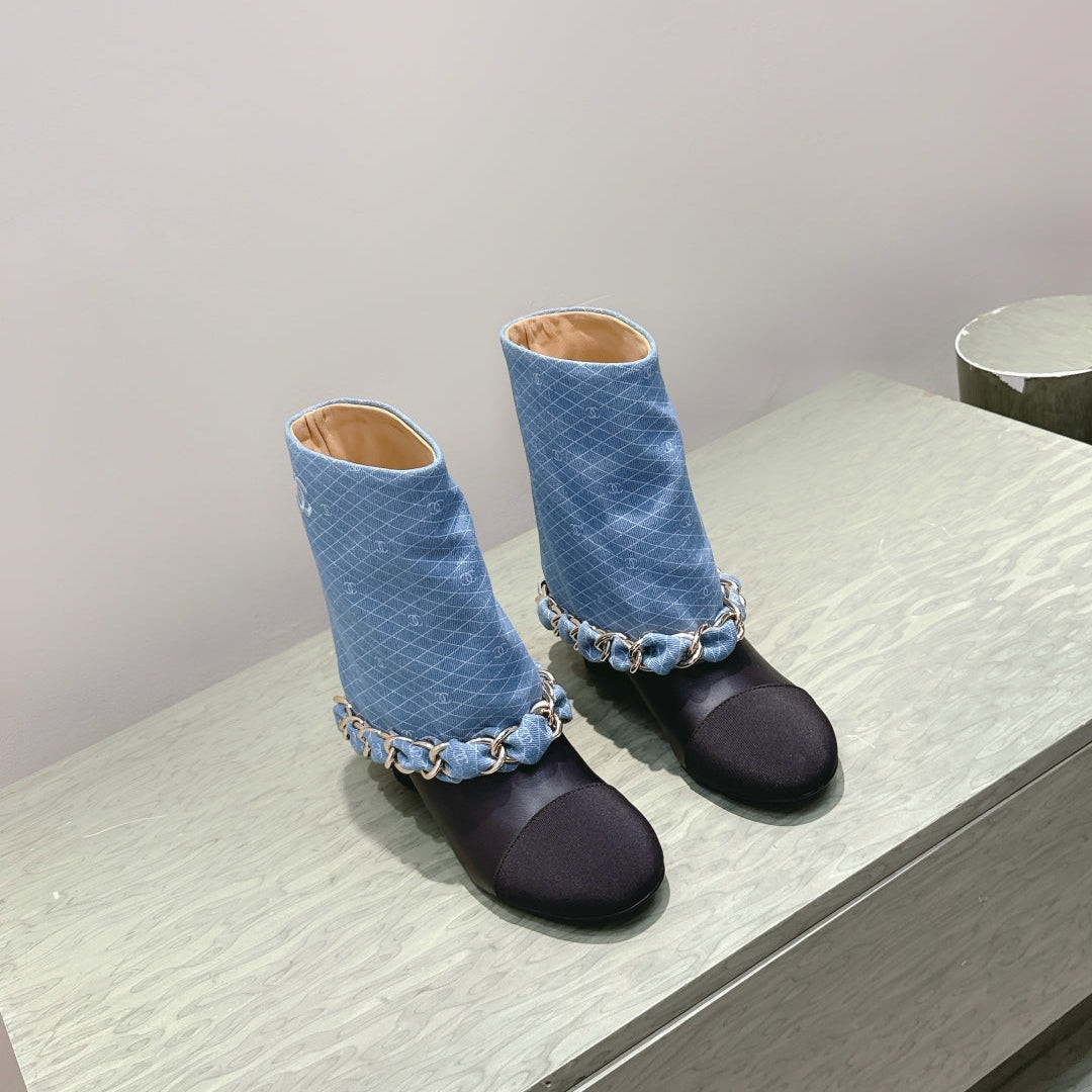 CC 25 Short Boot Blue Black Denim Fabric Calfskin 515265