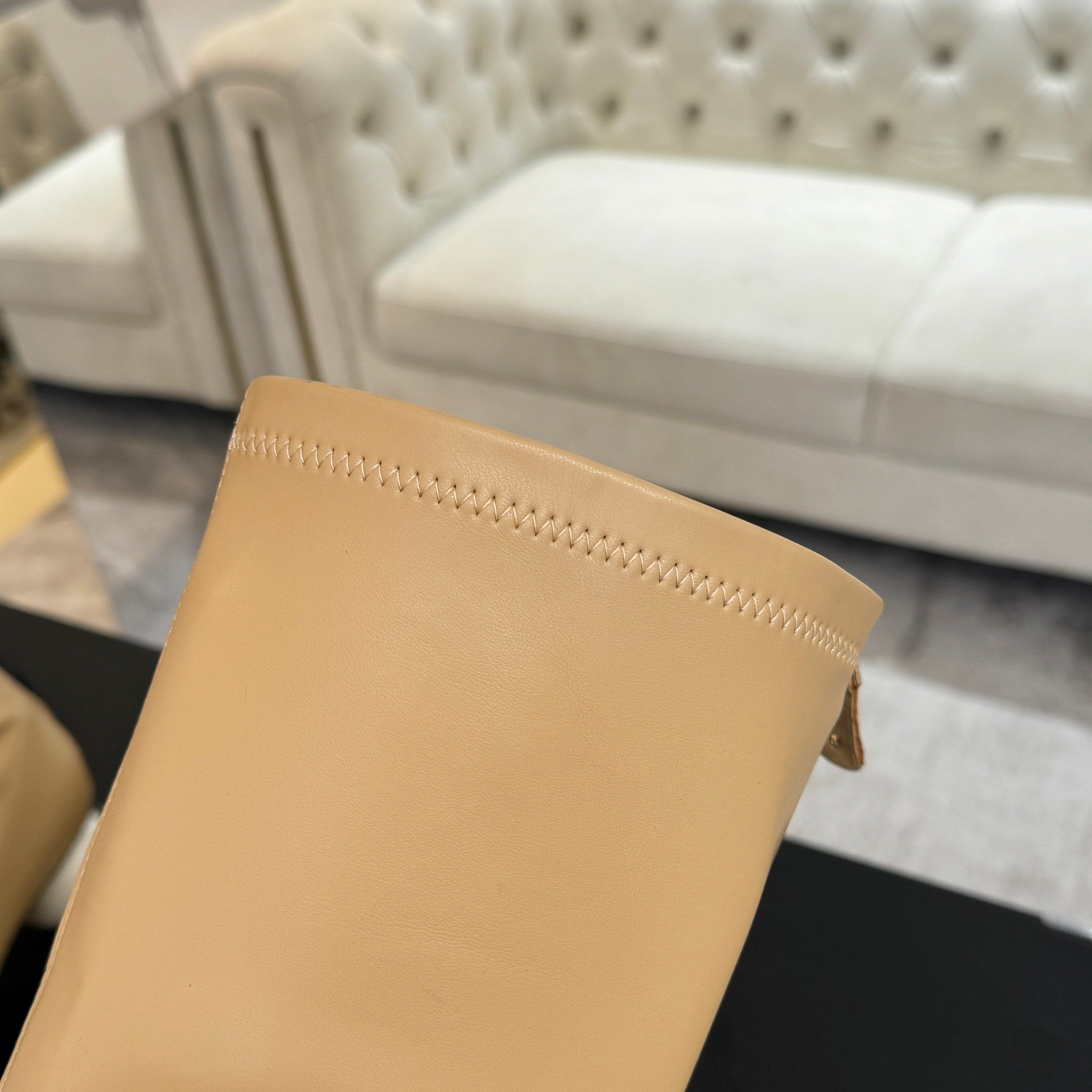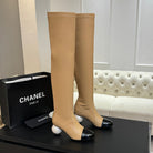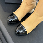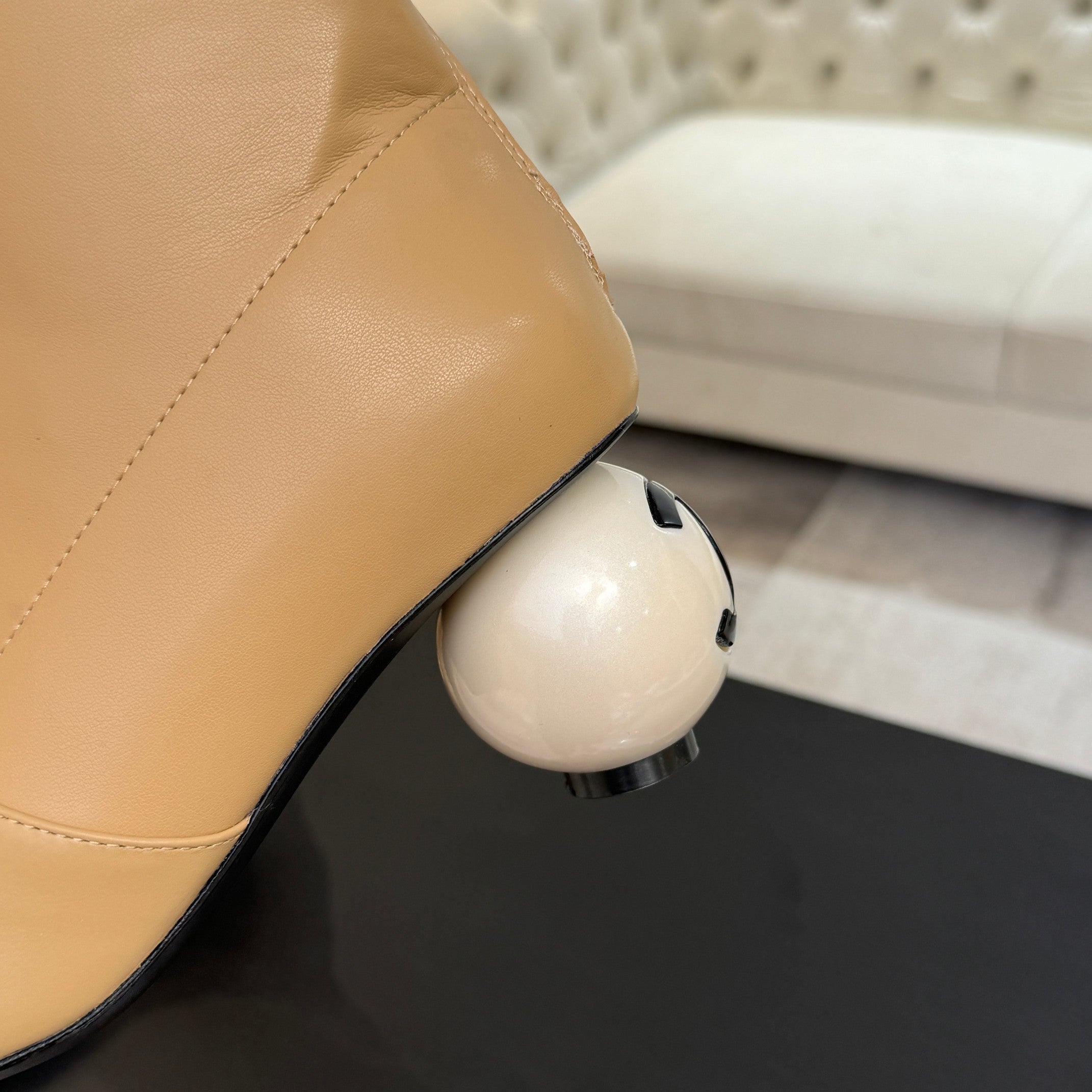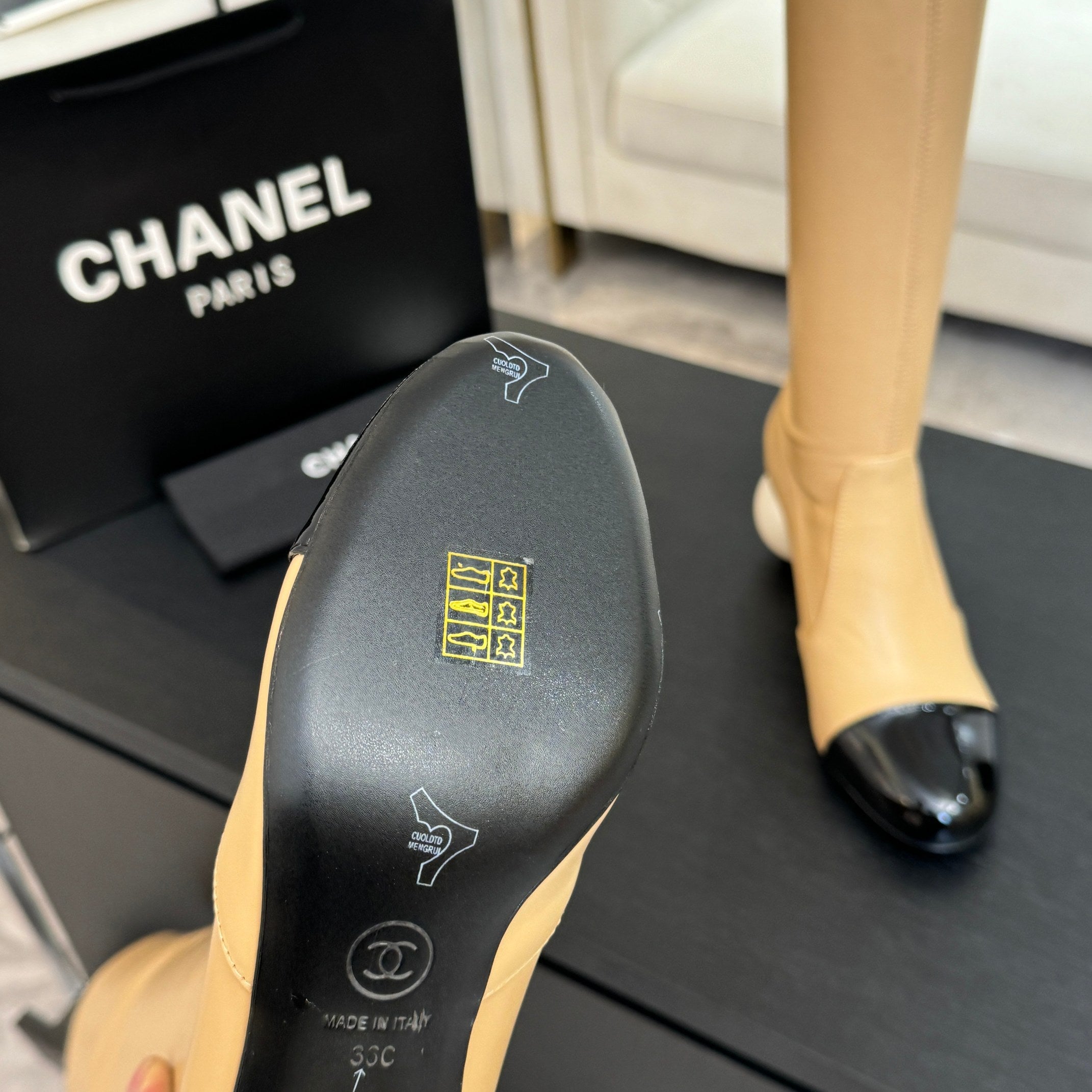 CC 25A Double C Giant Pearl Heel Boots 50mm Black Beige Cowhide 454947