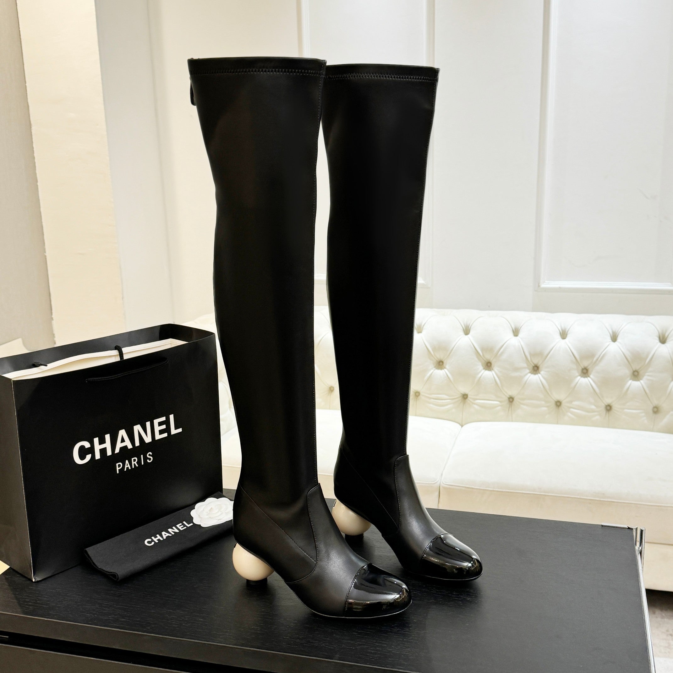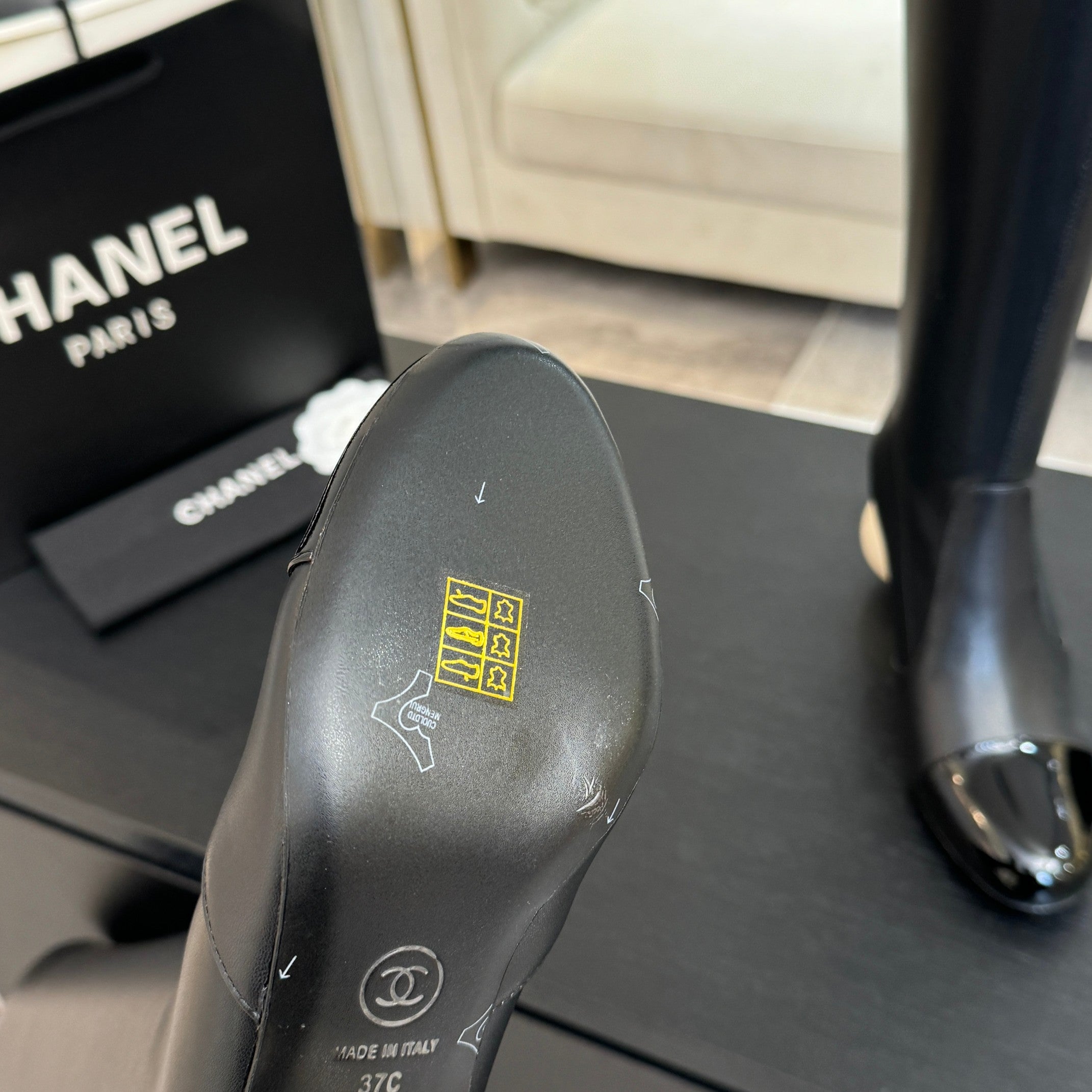 CC 25A Double C Giant Pearl Heel Boots 50mm Black Cowhide 454946